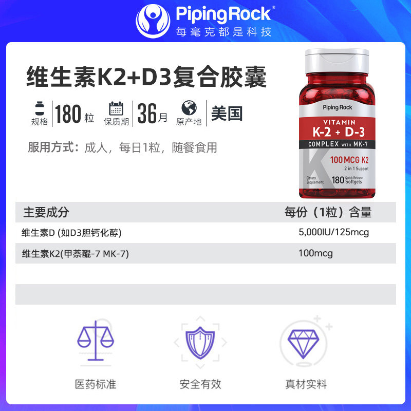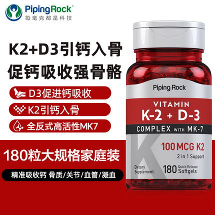 美国维生素k2软胶囊100mcg中老年增加青少年促进钙吸收非片骨密度