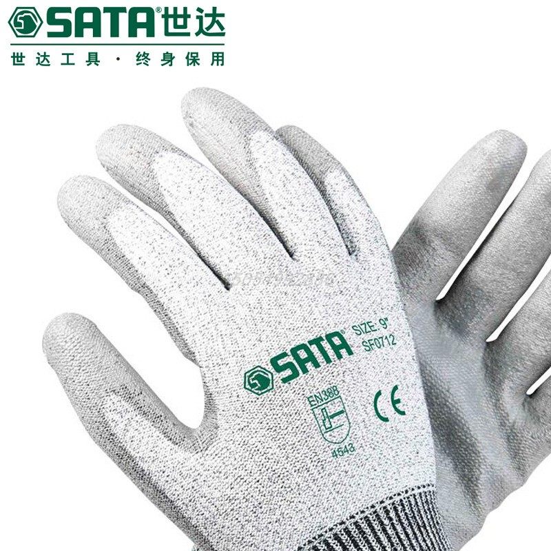 世达SATA SF0712 0711 PU掌浸中型抗切割手套工作手套劳保户外