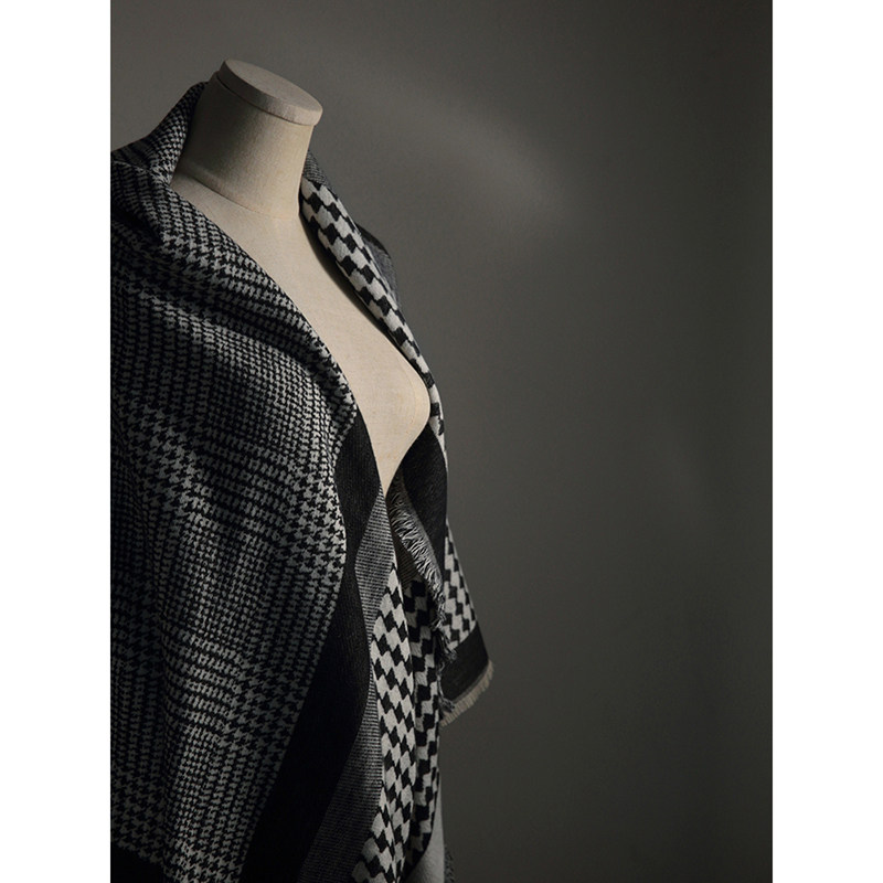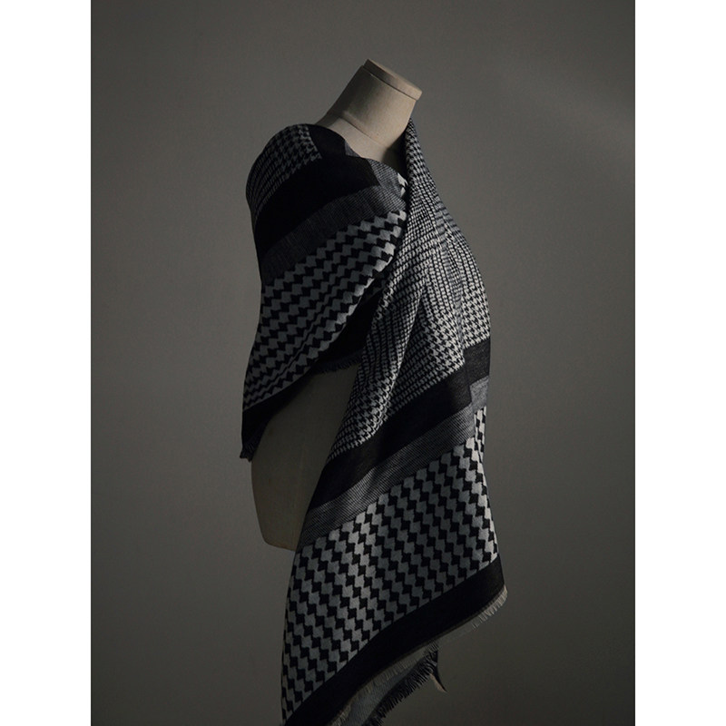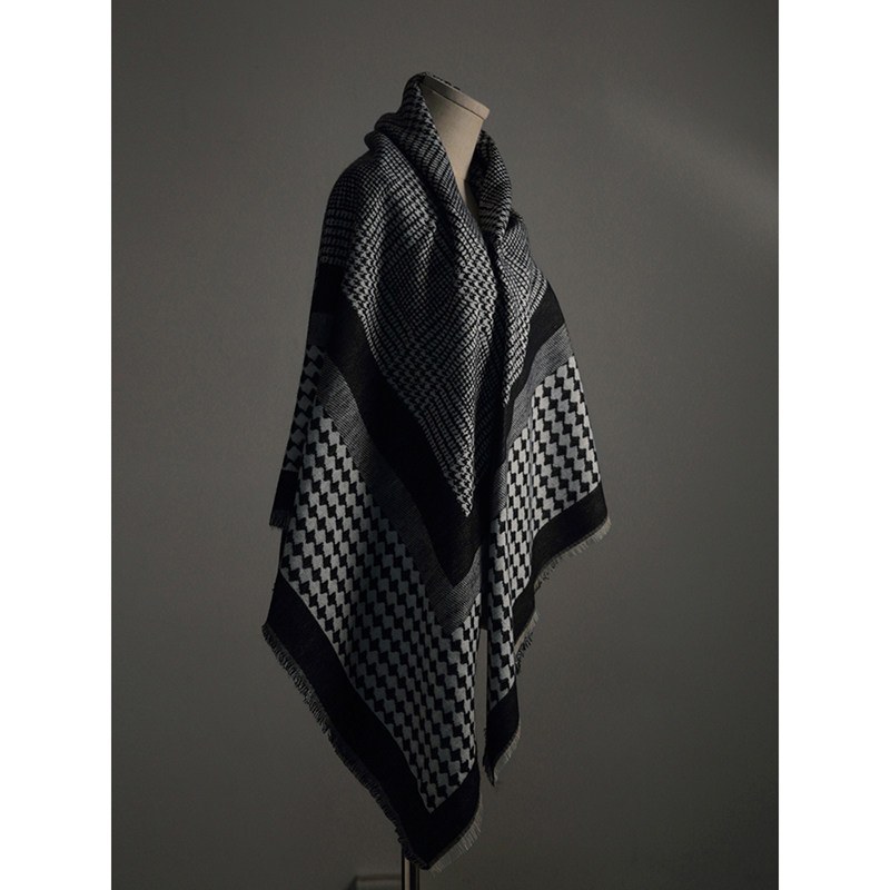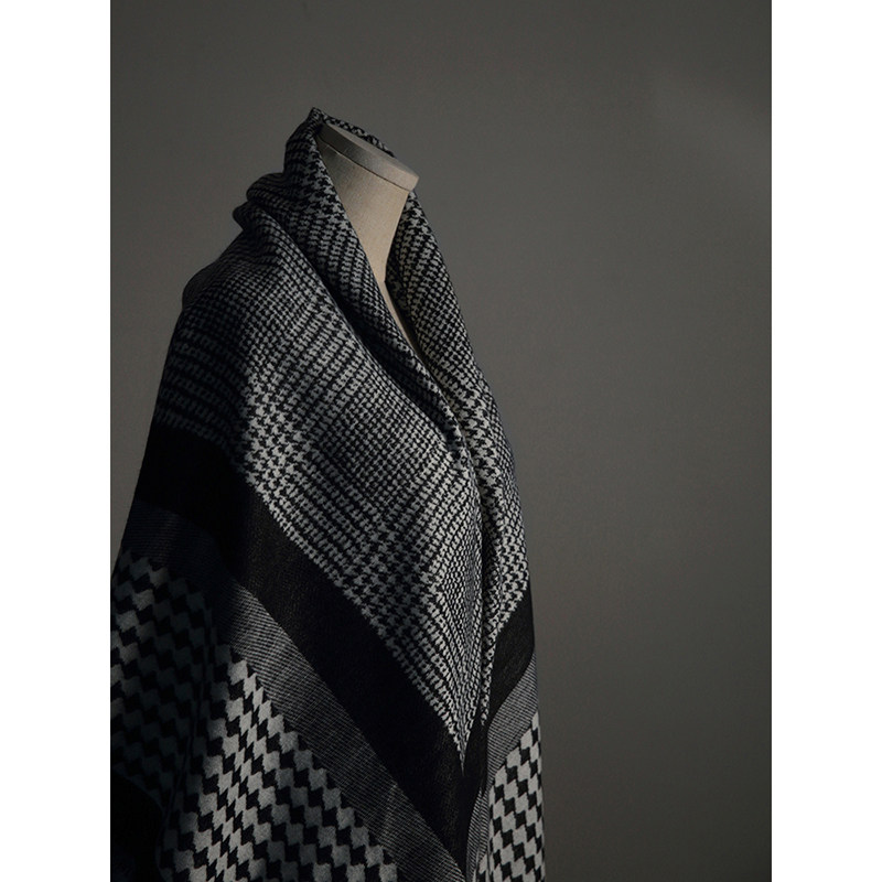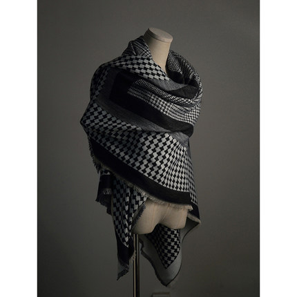 不掉毛!原创高阶感时尚千鸟格拼接厚款毛线仿羊绒大方巾披肩女冬