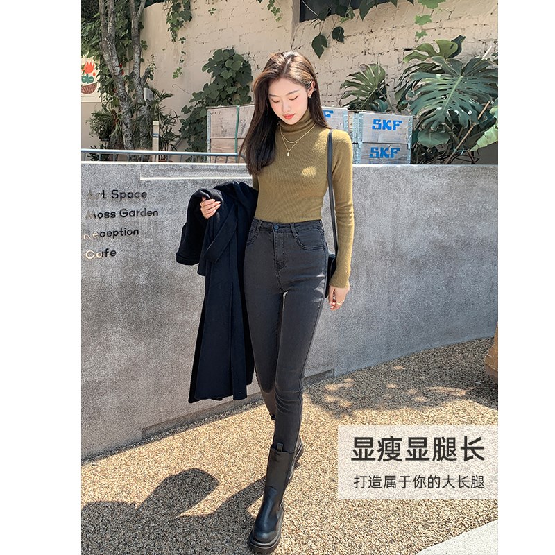 烟灰色牛仔c裤女小脚裤春季新款2024高腰显瘦弹力百搭紧身铅笔裤