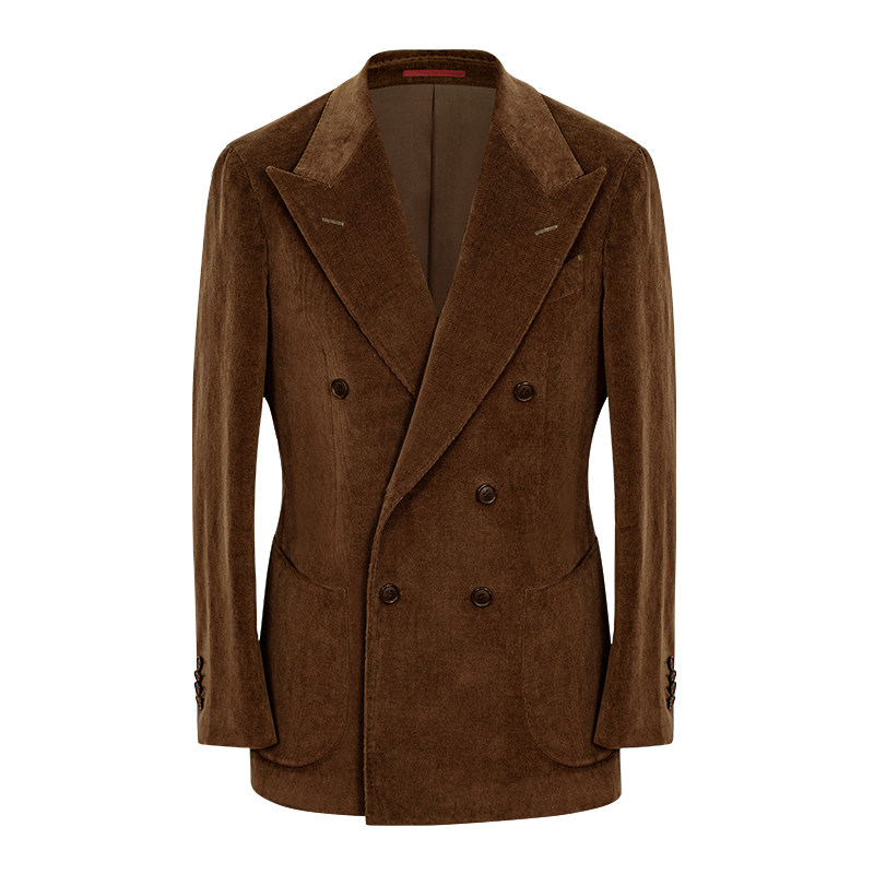 CULTUM那不勒斯双排扣灯芯绒西服套装男冬季商务休闲复古条绒西装