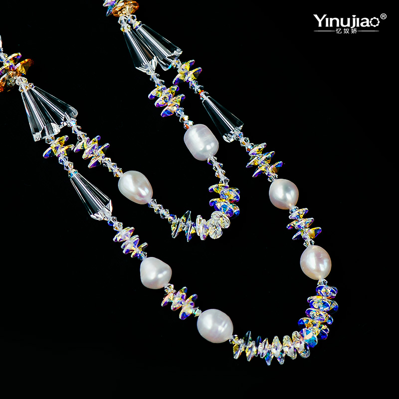 小梦大半天然珍珠毛衣链女长款时尚水晶项链挂饰简约秋冬长链配饰