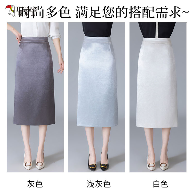啄木鸟高档缎面半身裙女夏季新款高腰醋酸中长款一步时尚a字包臀