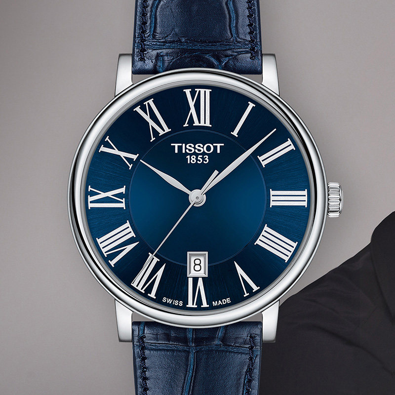 Tissot 天梭卡森臻我系列男表石英机芯复古蓝盘日历
