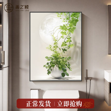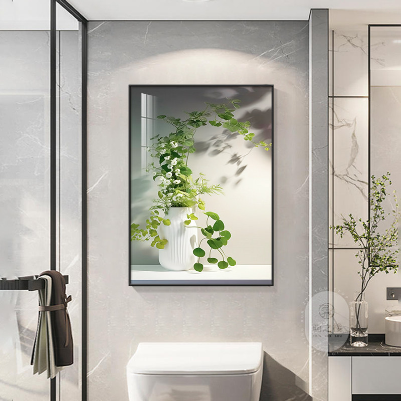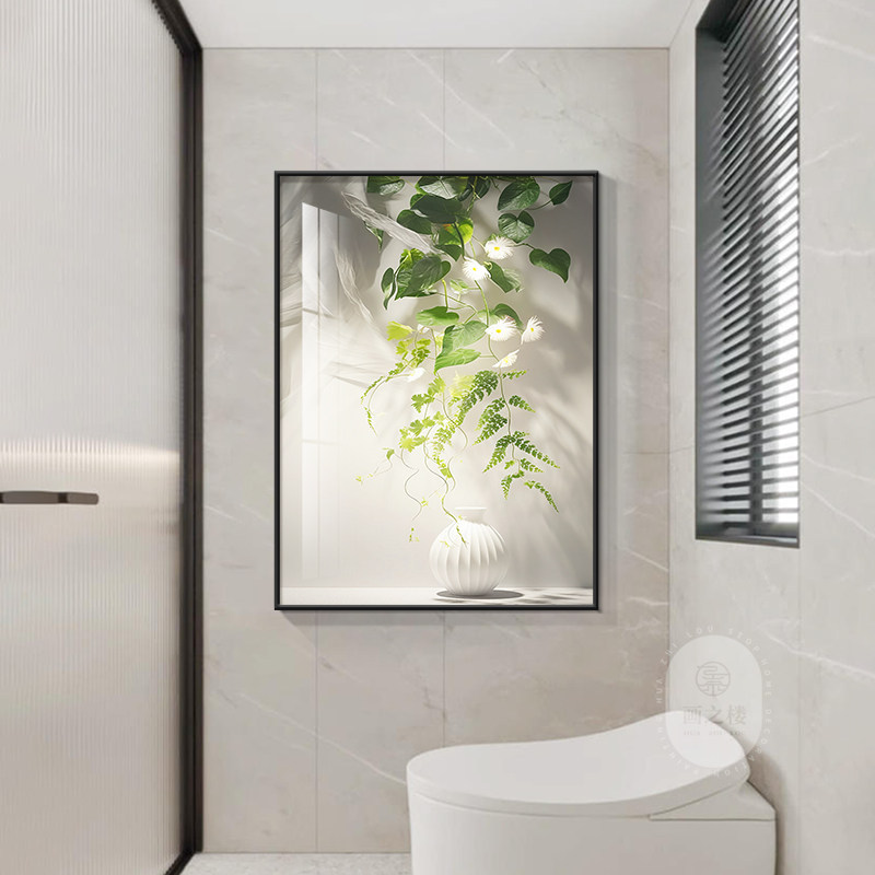 仿真绿植卫生间装饰画小清新酒店洗手间浴室厕所挂画遮丑晶瓷壁画