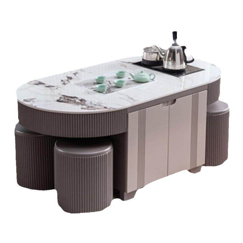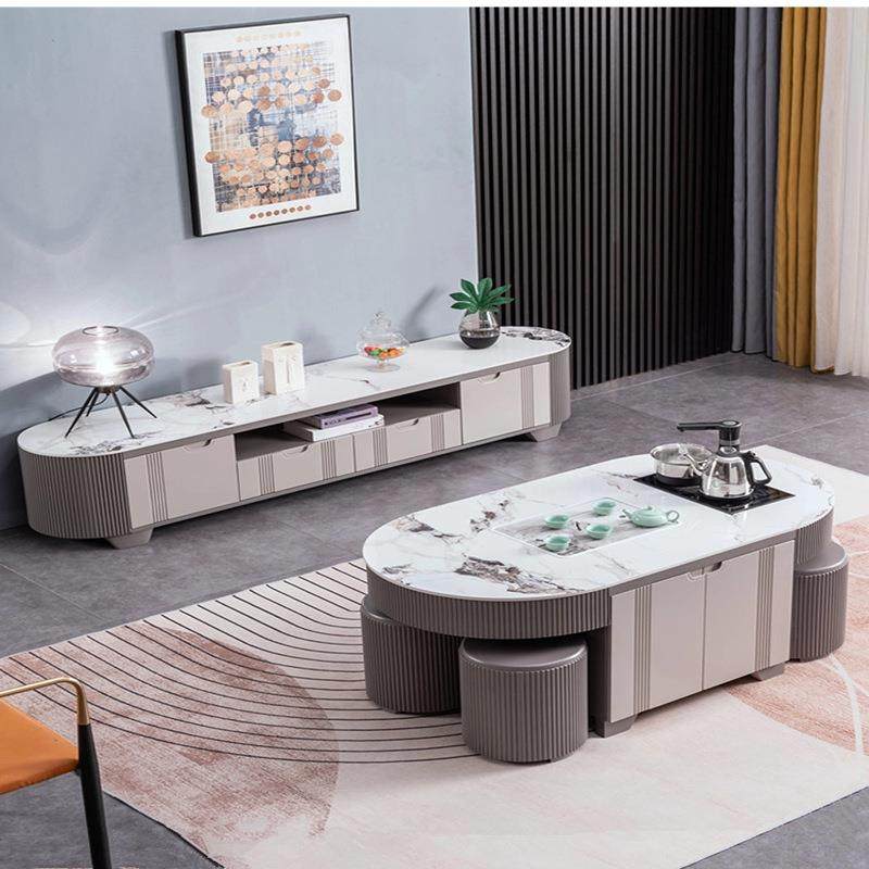茶几轻奢高级感岩板电视柜功夫带矮凳子电磁炉客厅成套家具多功能