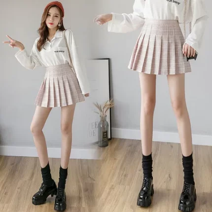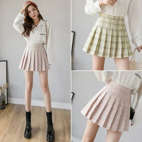 高腰2022女半身裙果绿色a字韩版新款学院风短裙百褶裙防走光夏季
