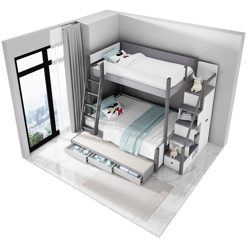 小户型双人平行二层上下子母床
