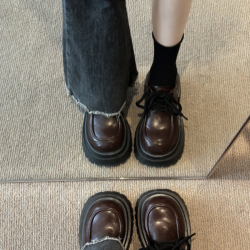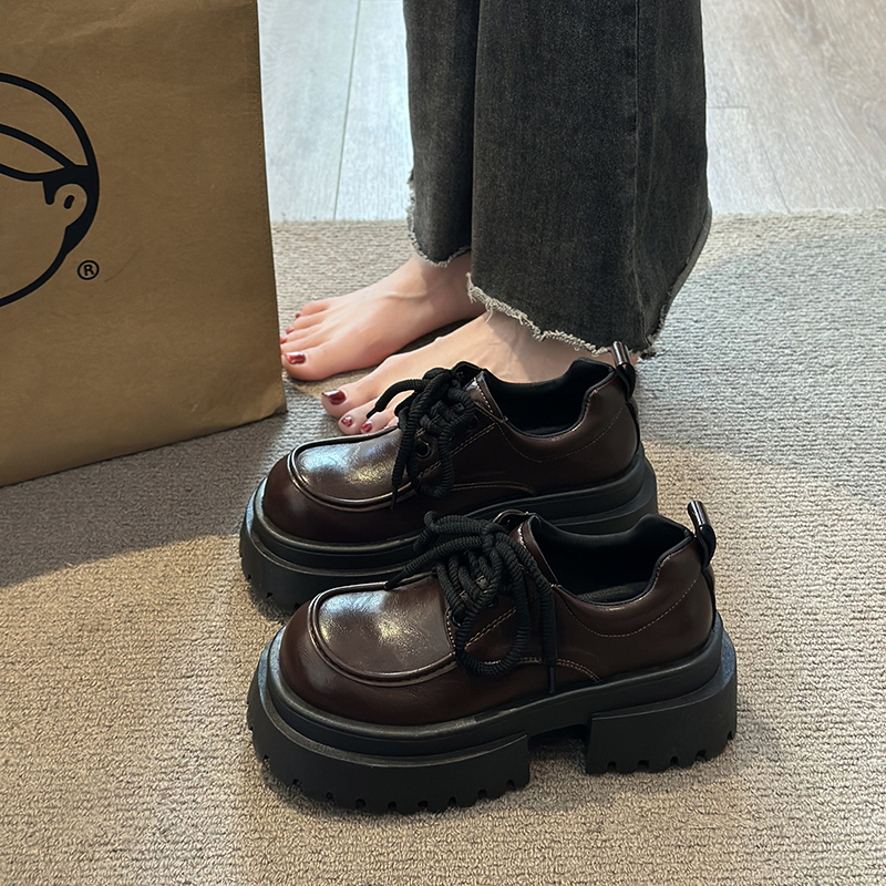 大头系带小皮鞋女2025秋季新款厚底百搭英伦学院风复古jk乐福单鞋