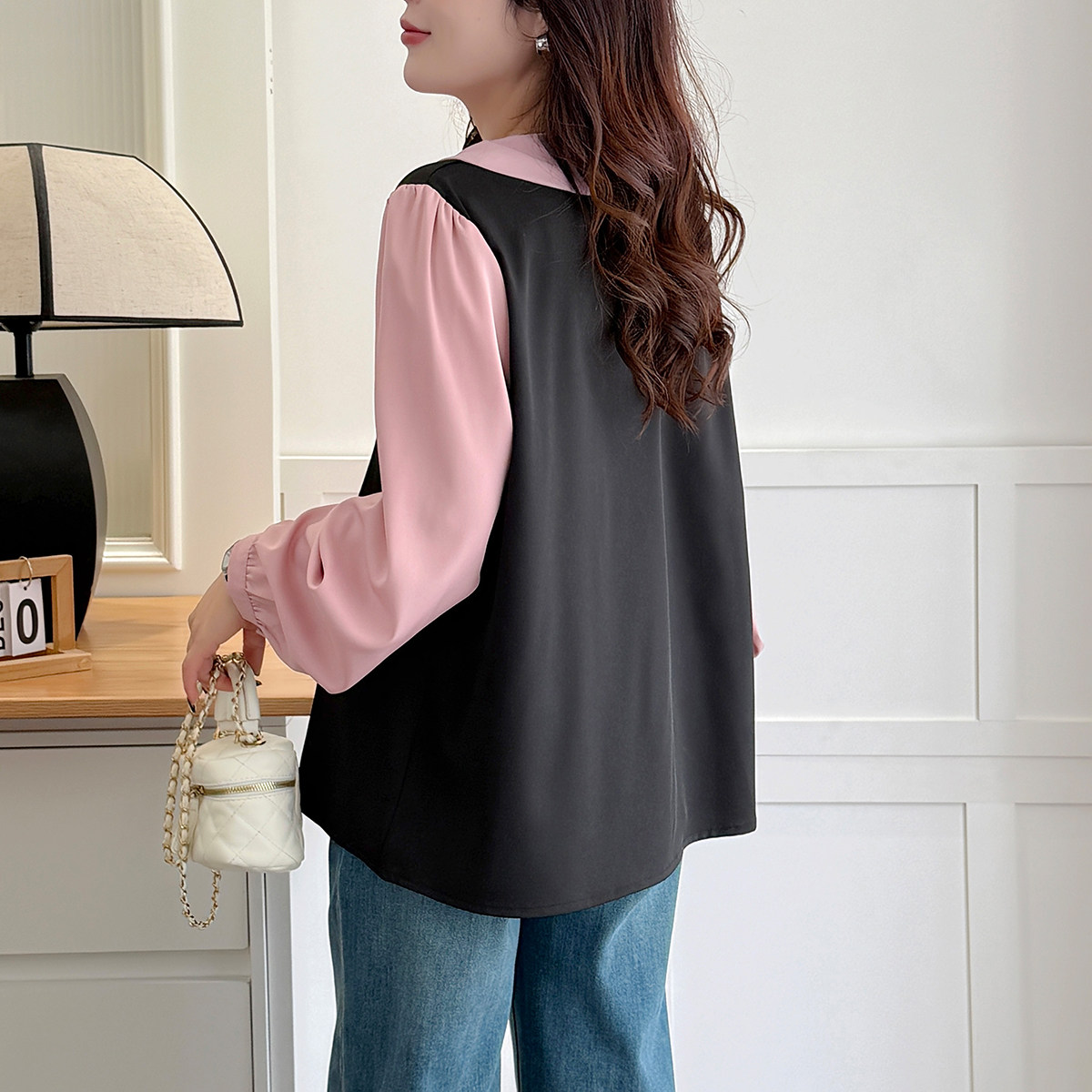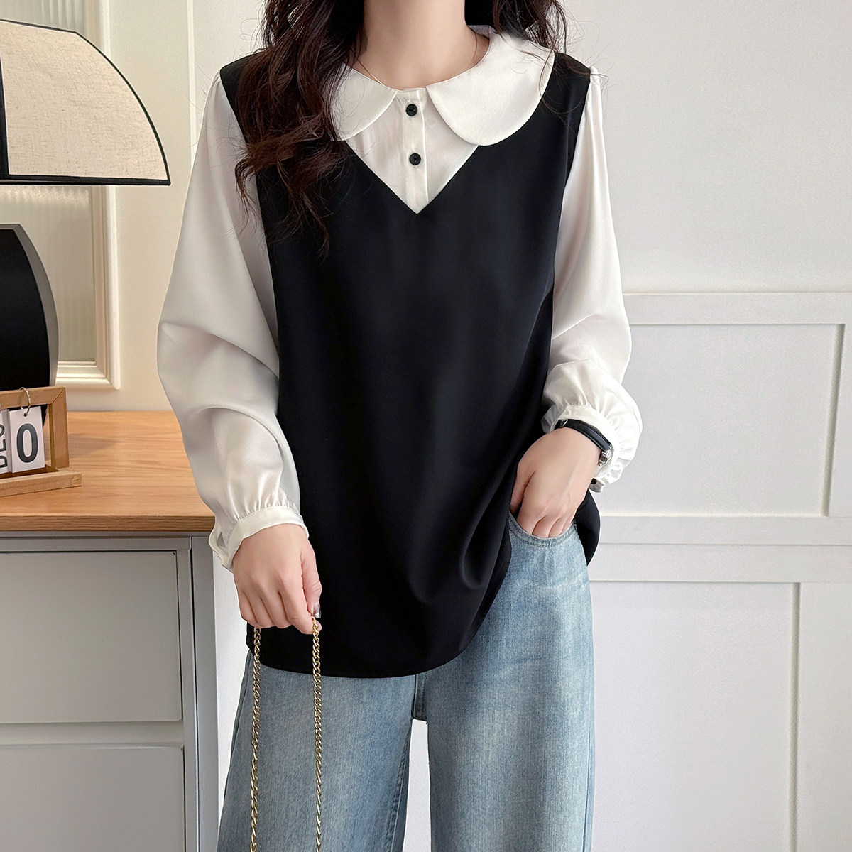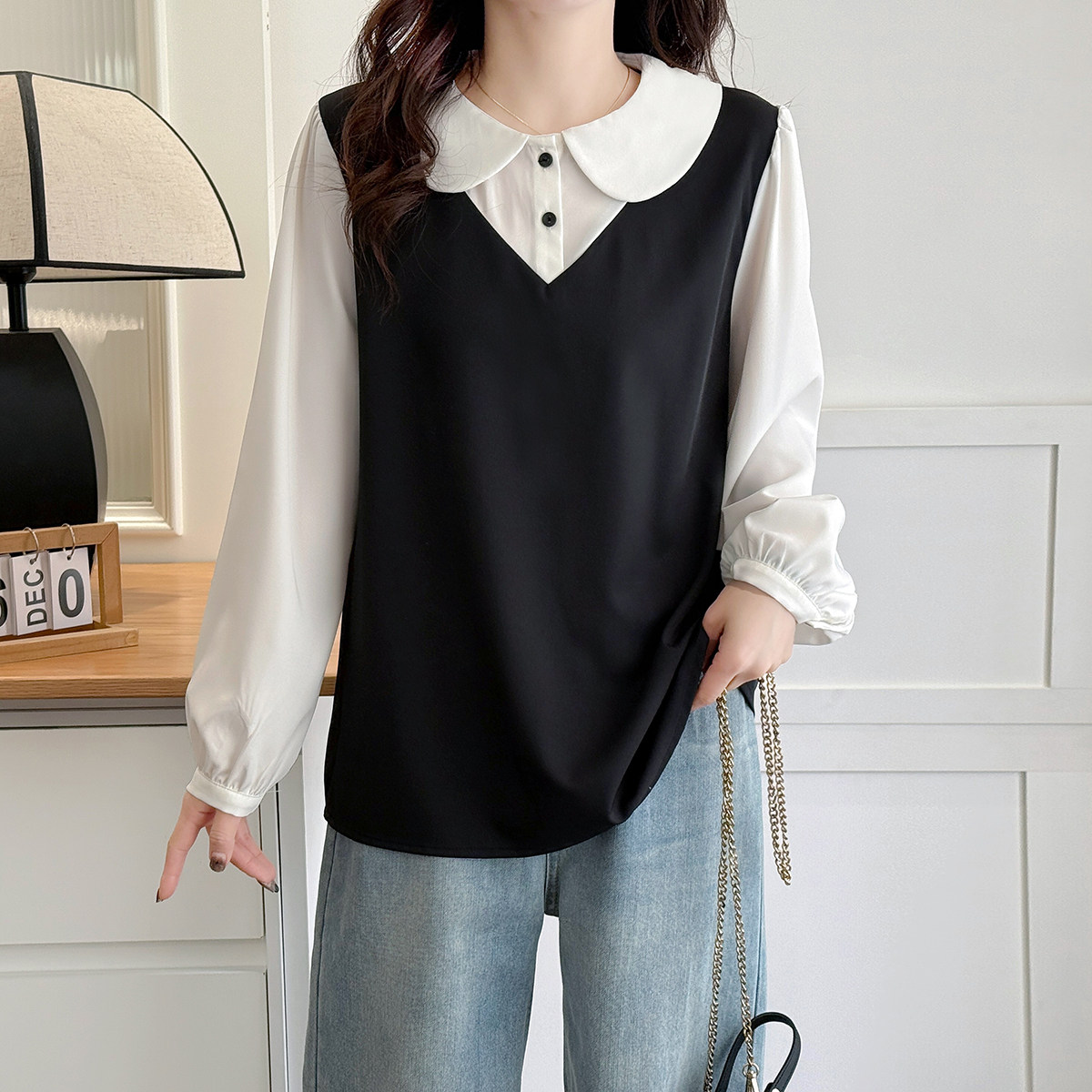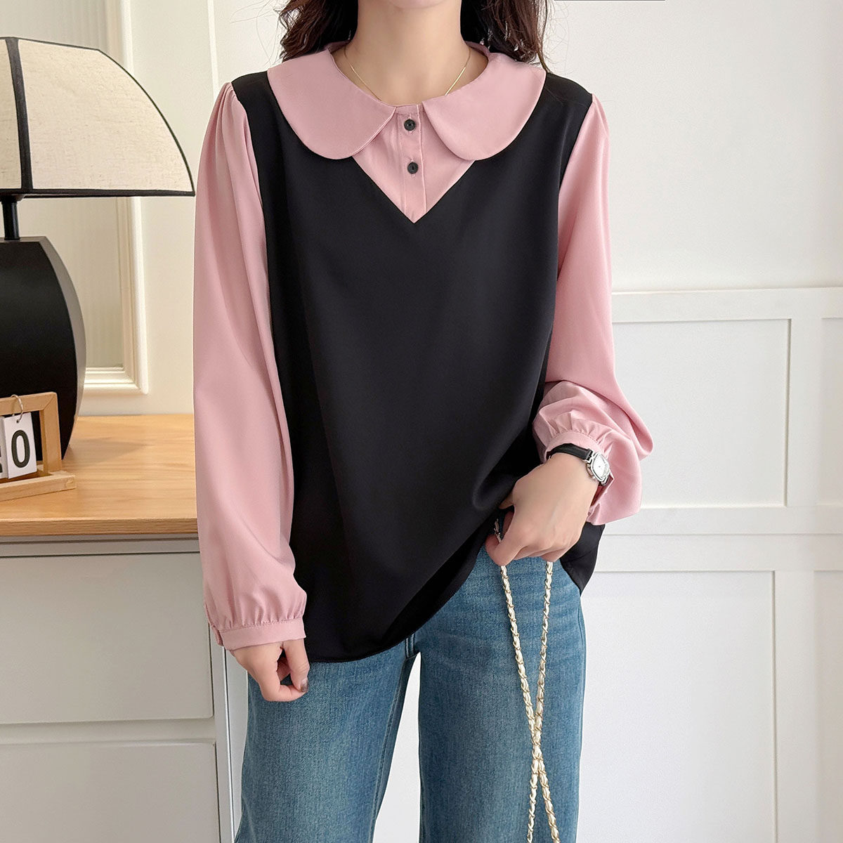 大码设计感假两件娃娃领雪纺衫女初春季2025年新款法式正肩打底衫