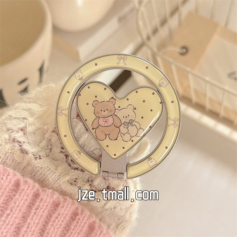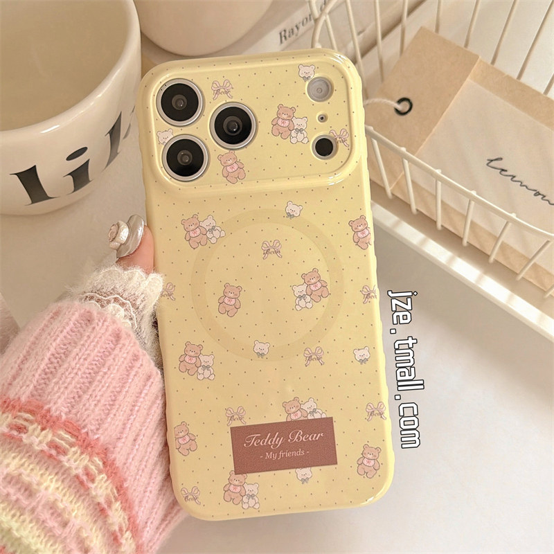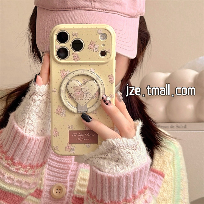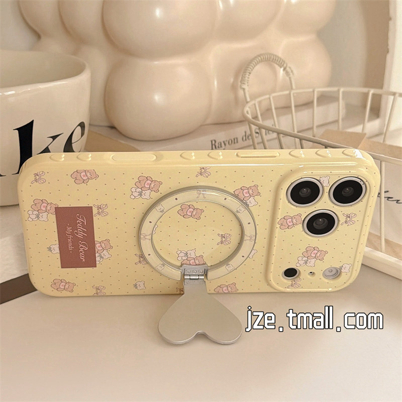 jze 可爱奶油黄波点爱心小熊磁吸支架适用苹果17ProMax手机壳日韩iphone15新款16pro女17pro全包14防摔手机套