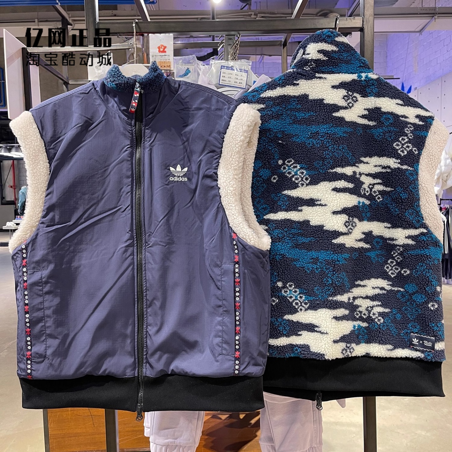 Adidas 三叶草 男女联名款双面穿羊羔绒保暖棉马甲背心 IX4218
