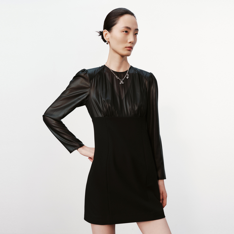 H·GENTEEL荷高24新款冬装女双层拼接收腰显瘦连衣裙GUE41750753