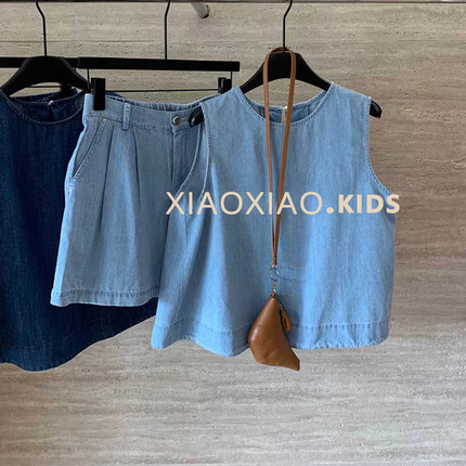 女童套装夏季2025新款儿童洋气两件套休闲短裤子无袖背心牛仔套装