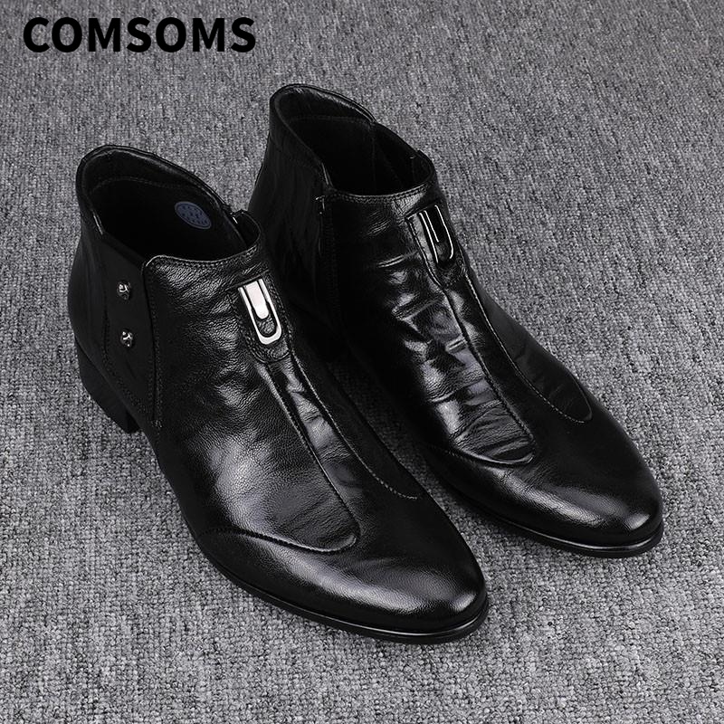 2024男士新款小尖头休闲皮鞋英伦侧拉链高帮日常百搭切尔西马丁鞋