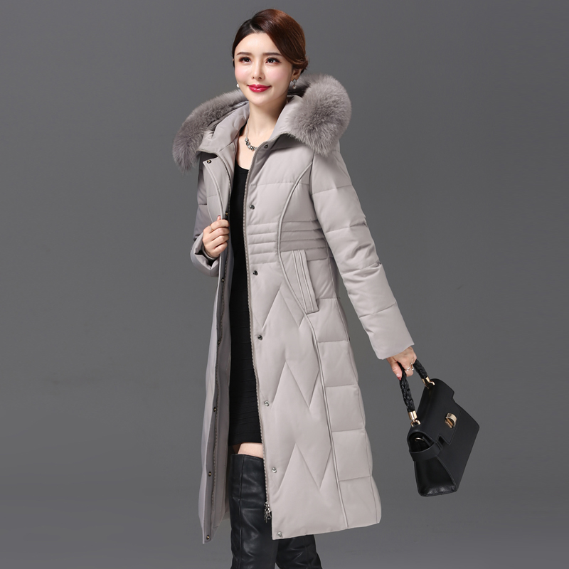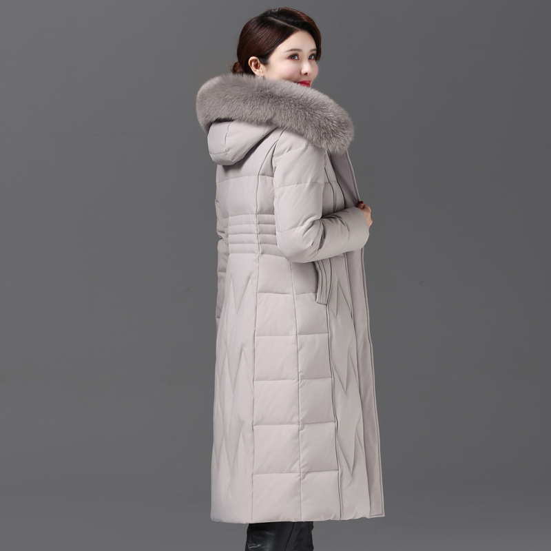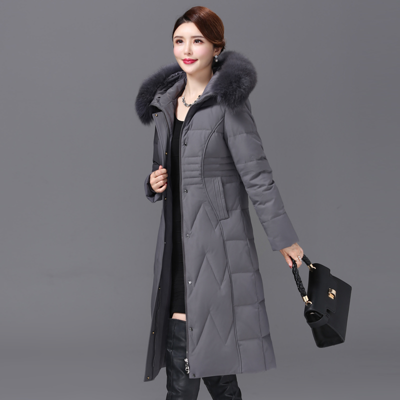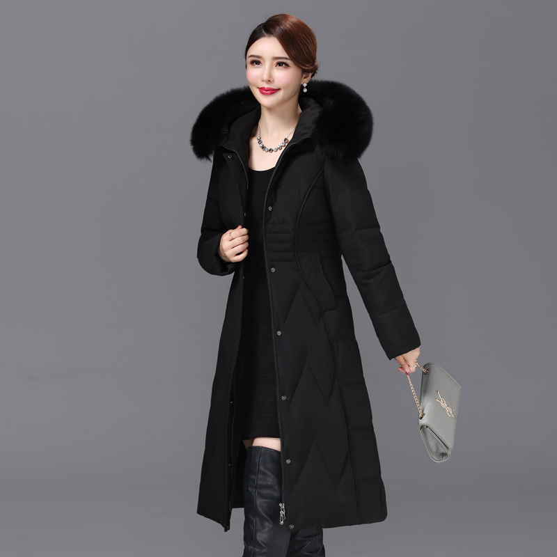 圣羽博雅新款中老年修身过膝长款妈妈装羽绒服女大毛领加厚外套
