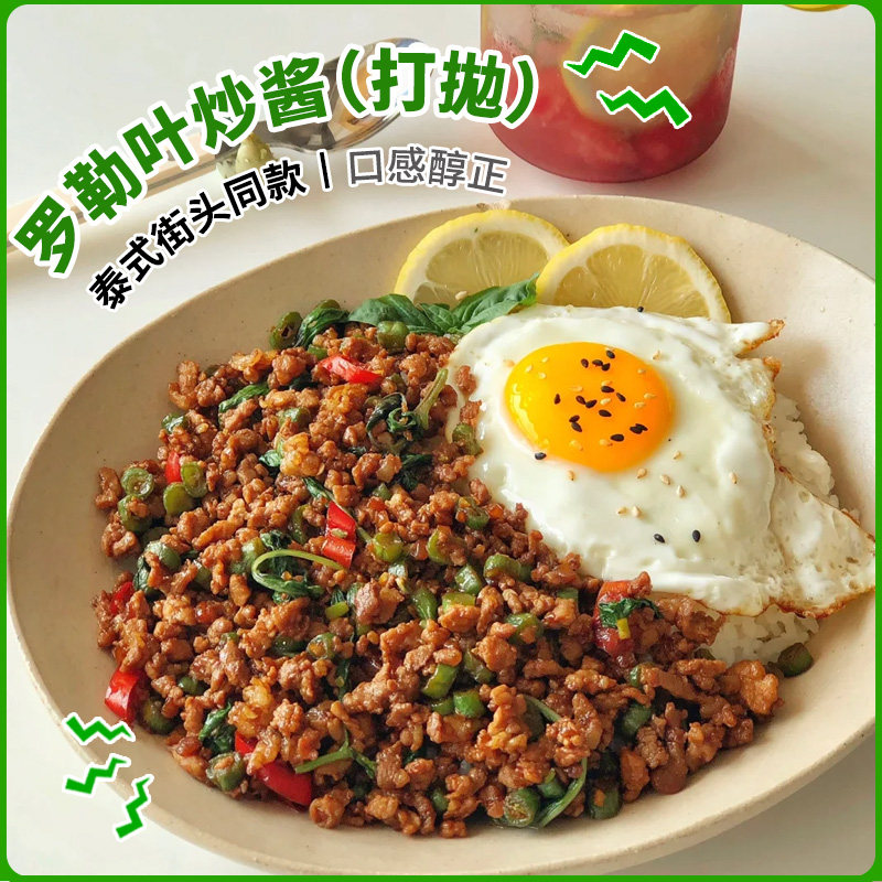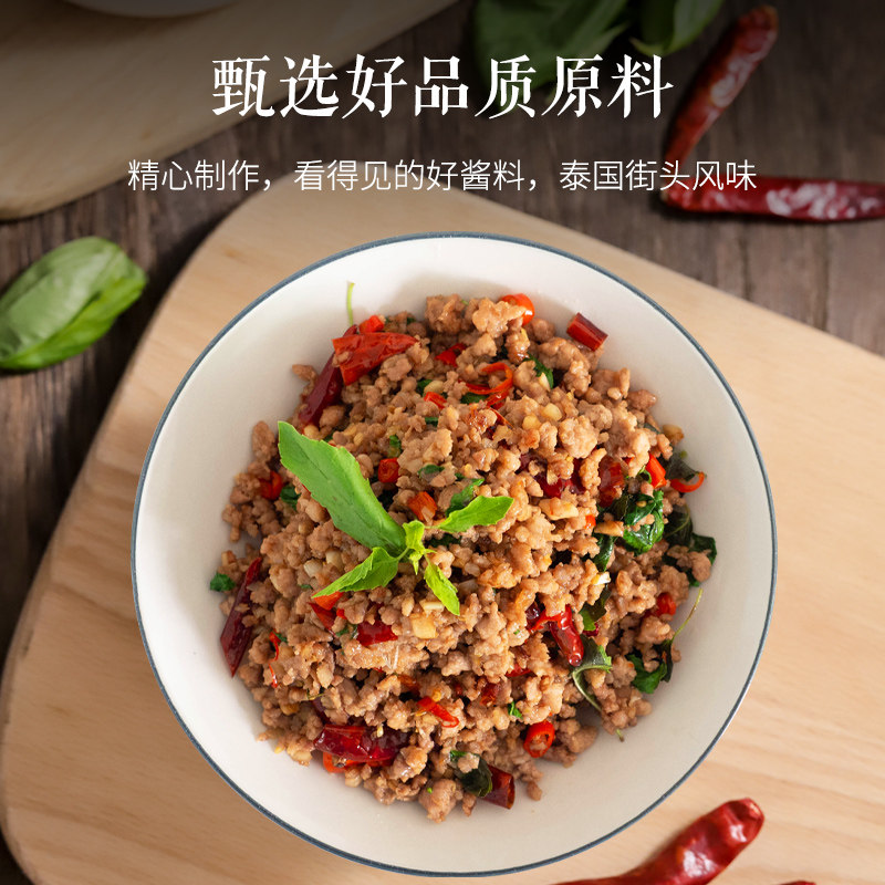 罗勒叶炒酱罗勒青酱炒肉酱打抛炒猪肉饭泰式咖喱肉烧烤肉调料酱