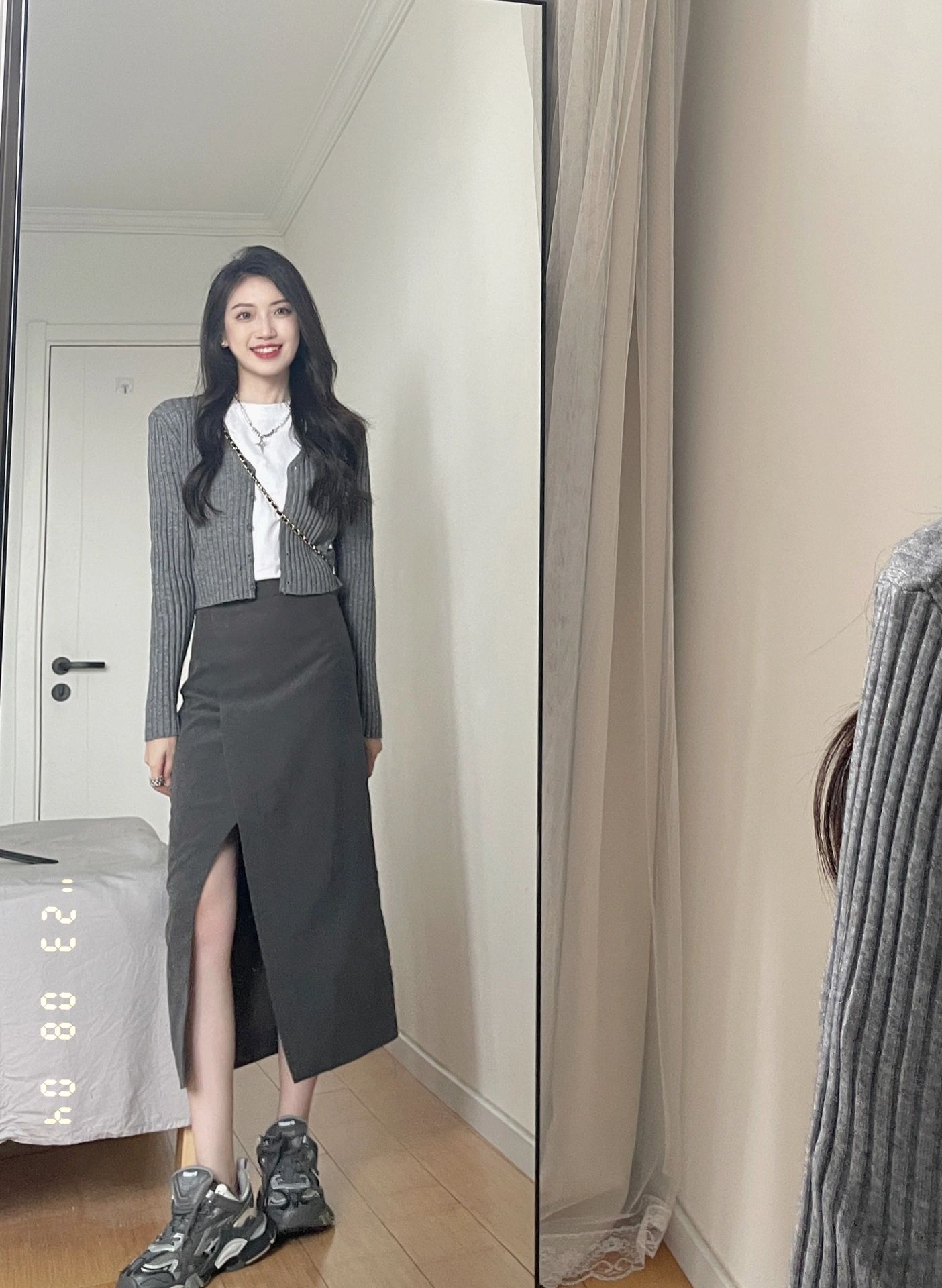灰色开叉半身裙女春夏季中长款高腰显瘦a字裙高级感包臀西装裙子