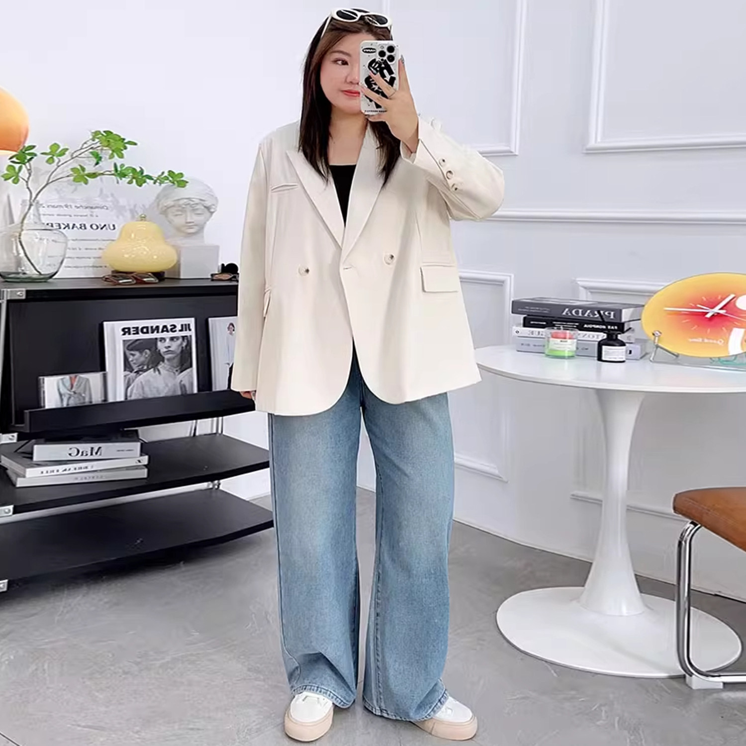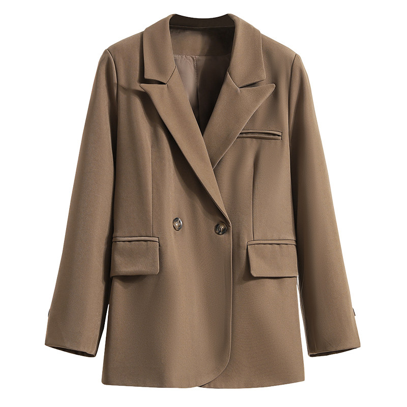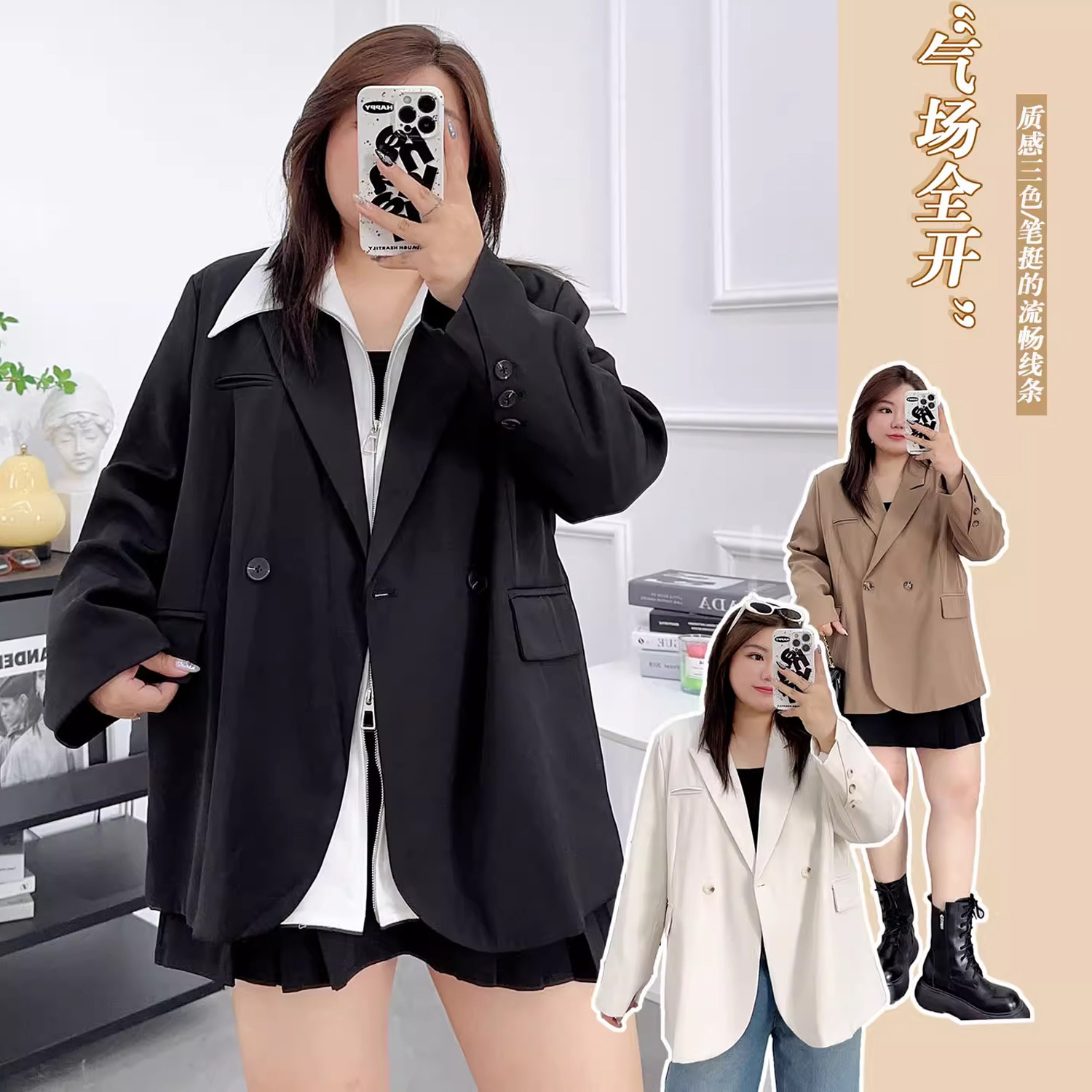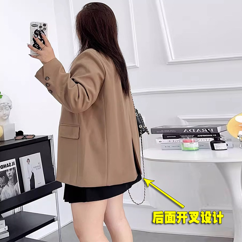 高级感黑色西装外套女秋冬胖mm大码宽松外穿廓形小个子休闲小西服