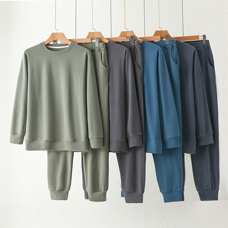 男士德绒睡衣保暖套装秋冬大码套头防寒加绒卫衣宽松可外穿家居服