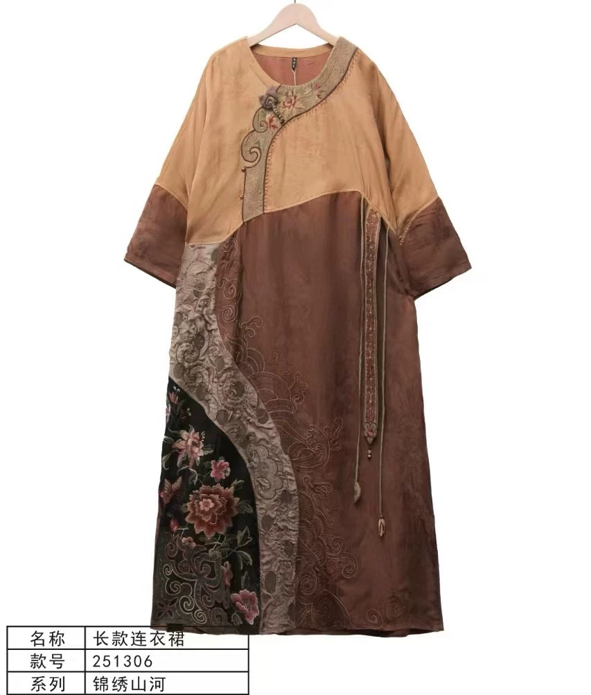 楚馨千椿物喜原创民族风新中式国风复古文艺刺绣连衣裙女长款裙子