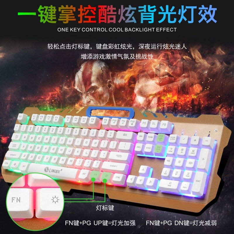 金属机械手感有线键盘台式电脑笔记本通用静音透光游戏USB家用