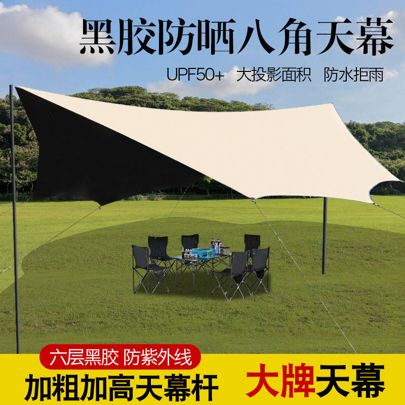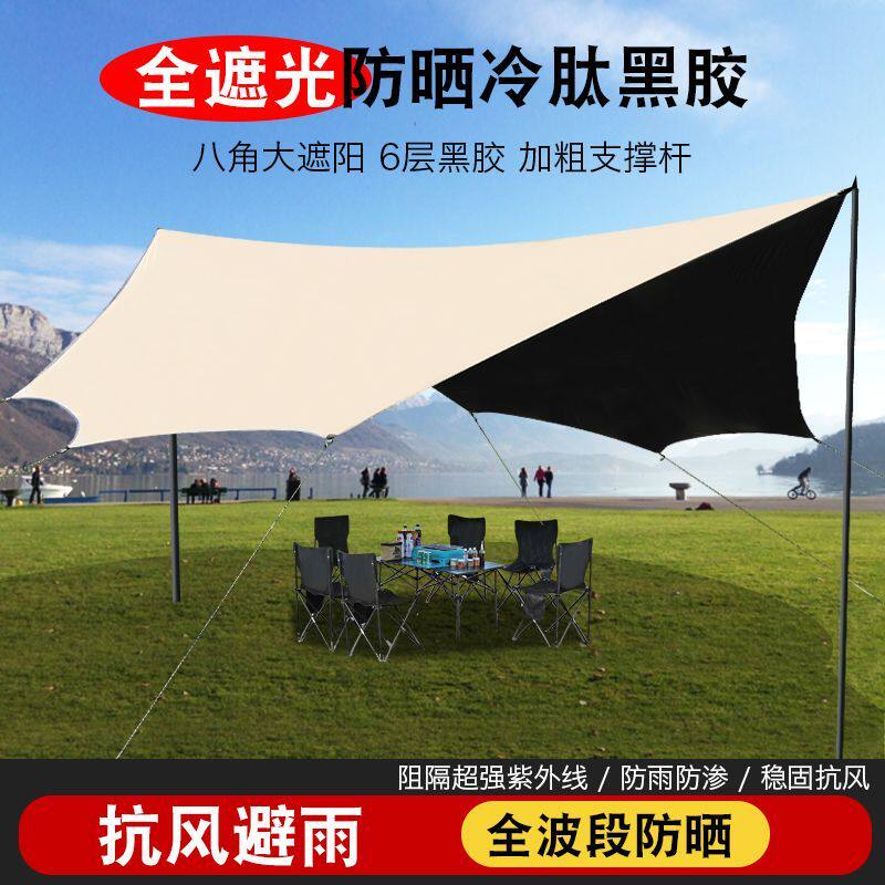 户外天幕帐篷四角六角八角加厚蝶形防晒防水遮阳棚野营露营野炊