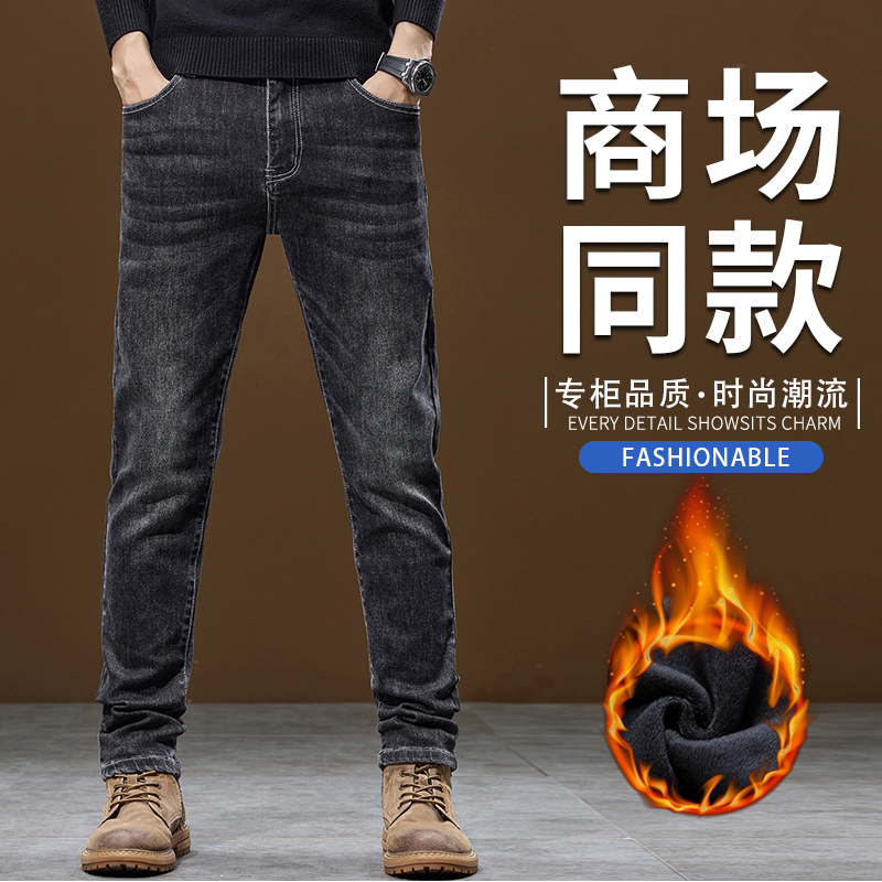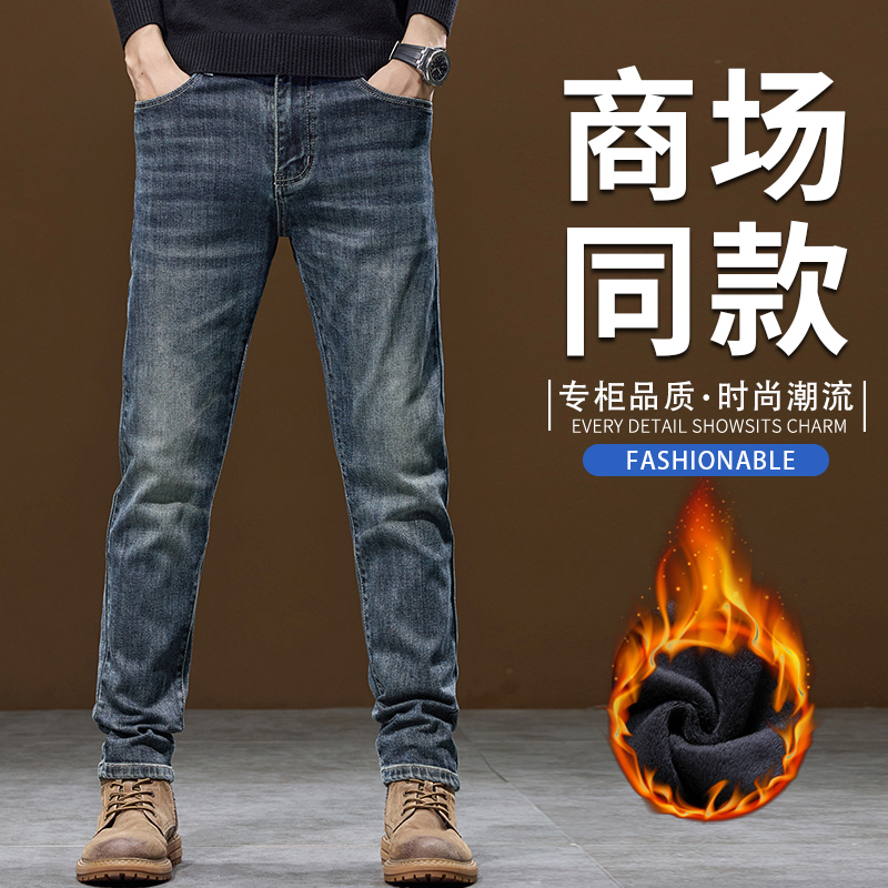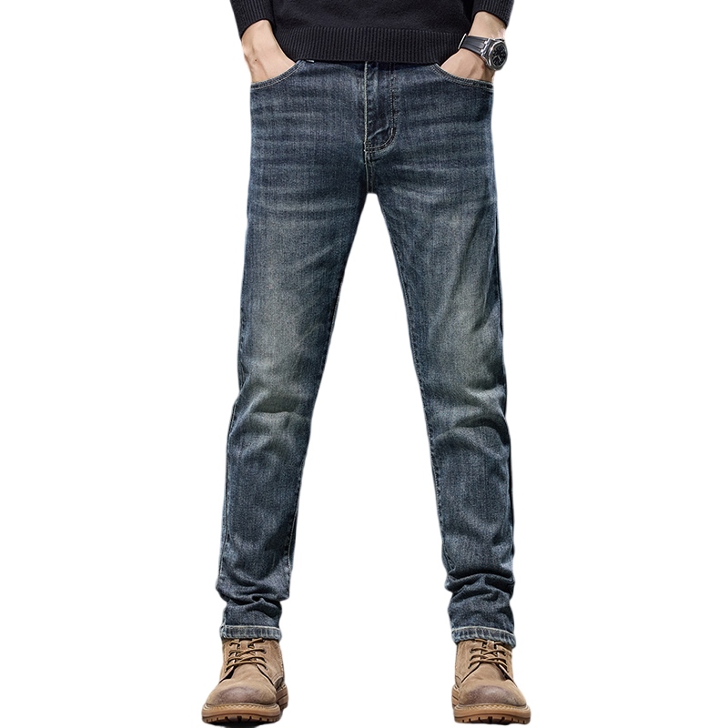 2025秋冬新款加绒弹力怀旧修身小脚小直筒男士牛仔裤复古男装847