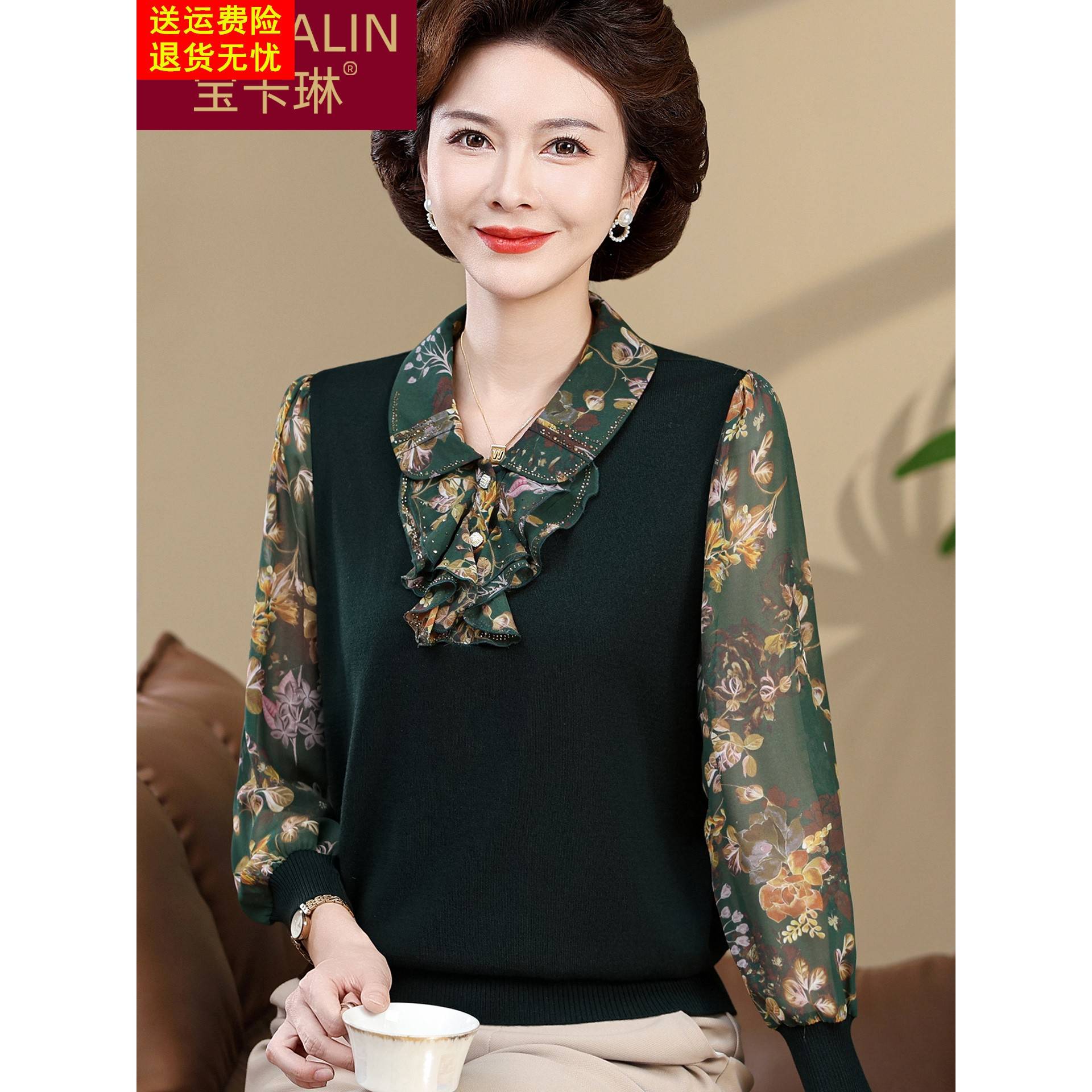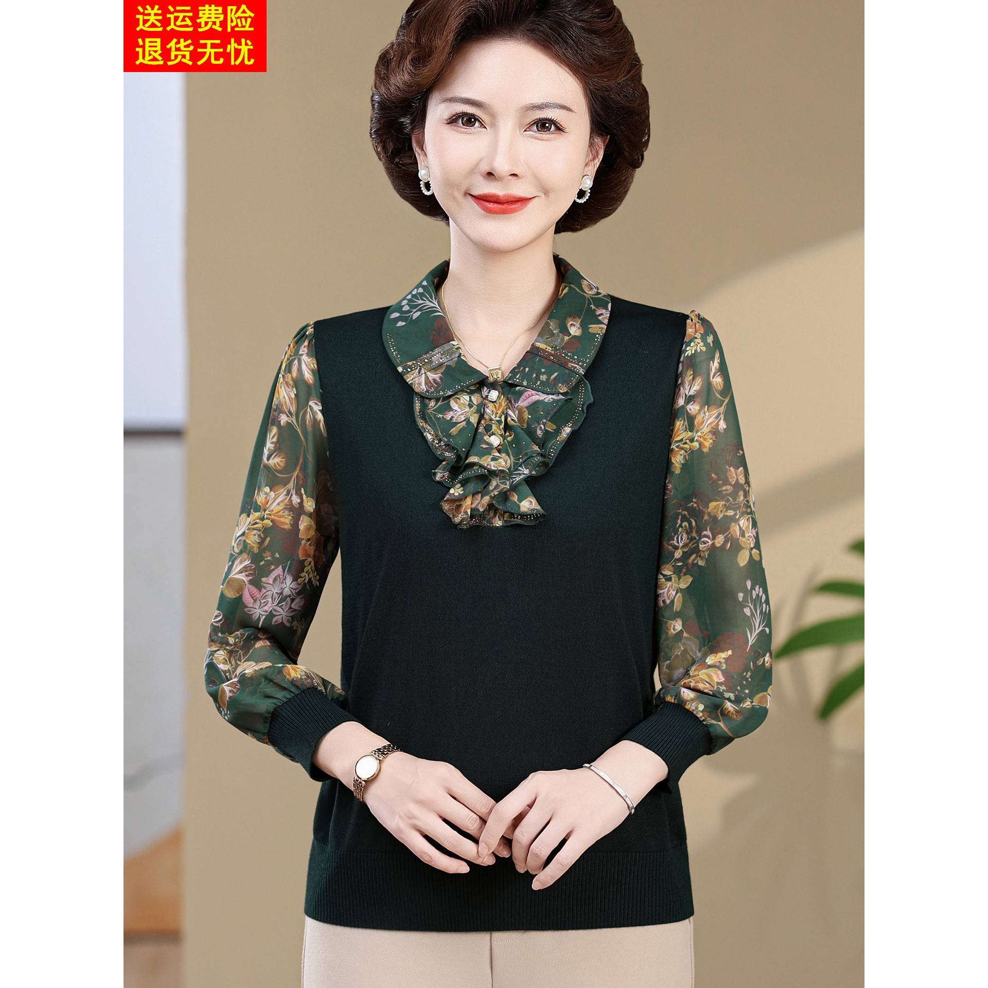 妈妈秋装2025新款长袖t恤荷叶边领子衣服中老年女装秋款小衫洋气