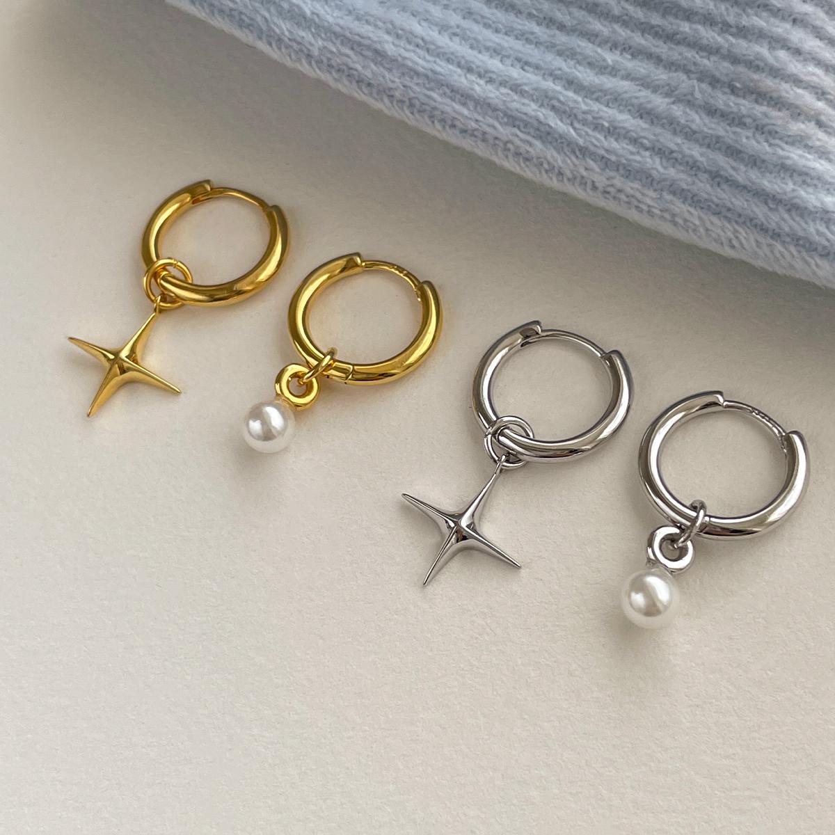 星星耳钉女纯银银针耳环小众设计高级感耳骨环耳扣不对称金色耳饰