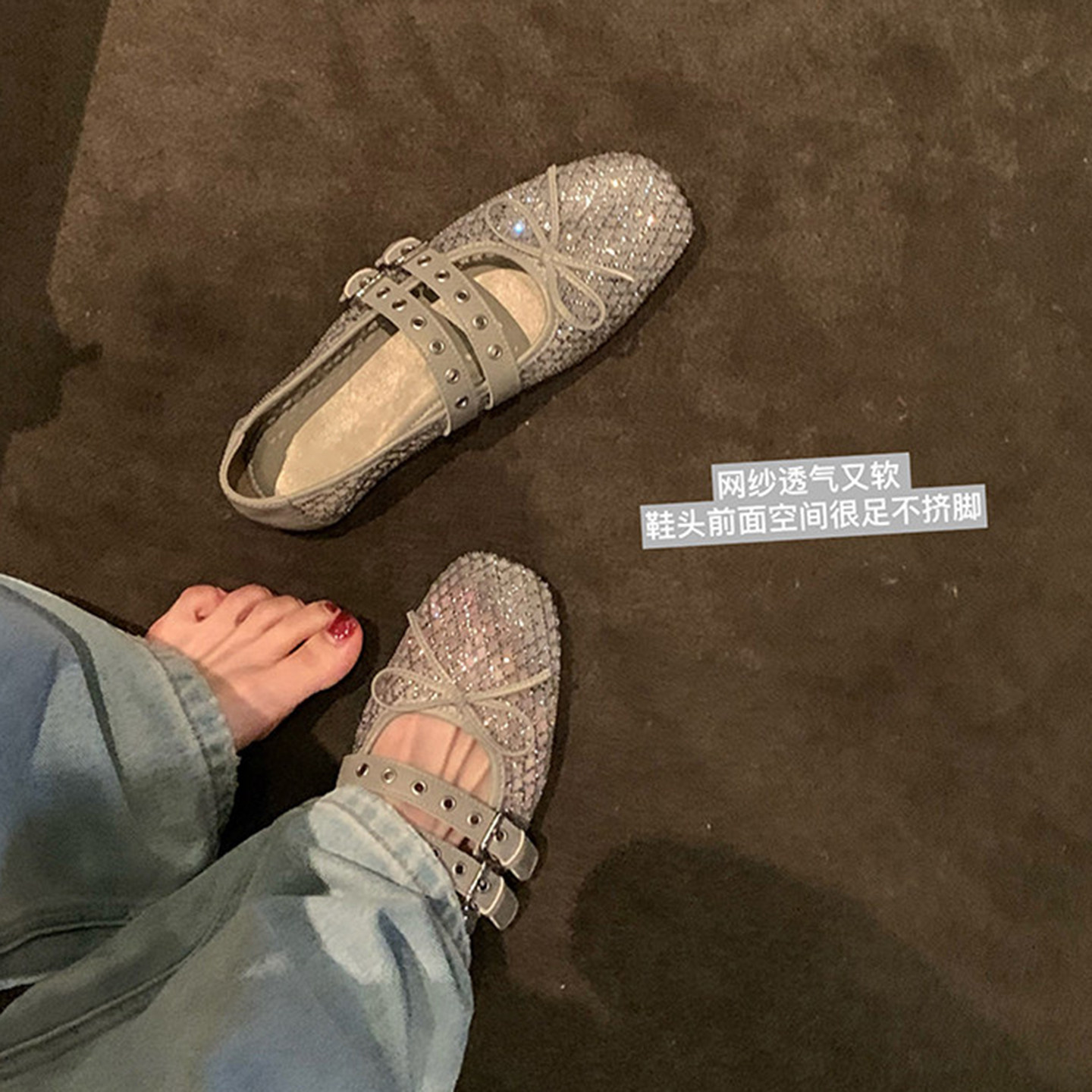 羊皮版~法式镂空玛丽珍鞋女2026春蝴蝶结方头浅口双扣带平底单鞋