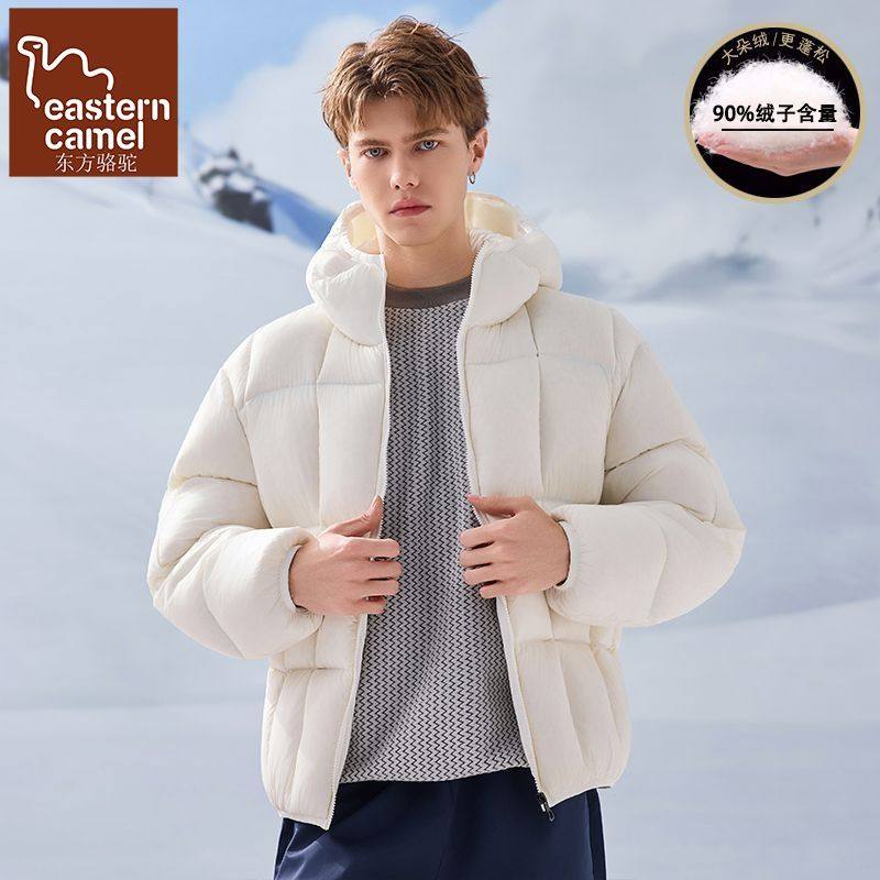 东方骆驼灰色连帽羽绒服男2025新款冬季鸭绒面包服保暖独特短外套