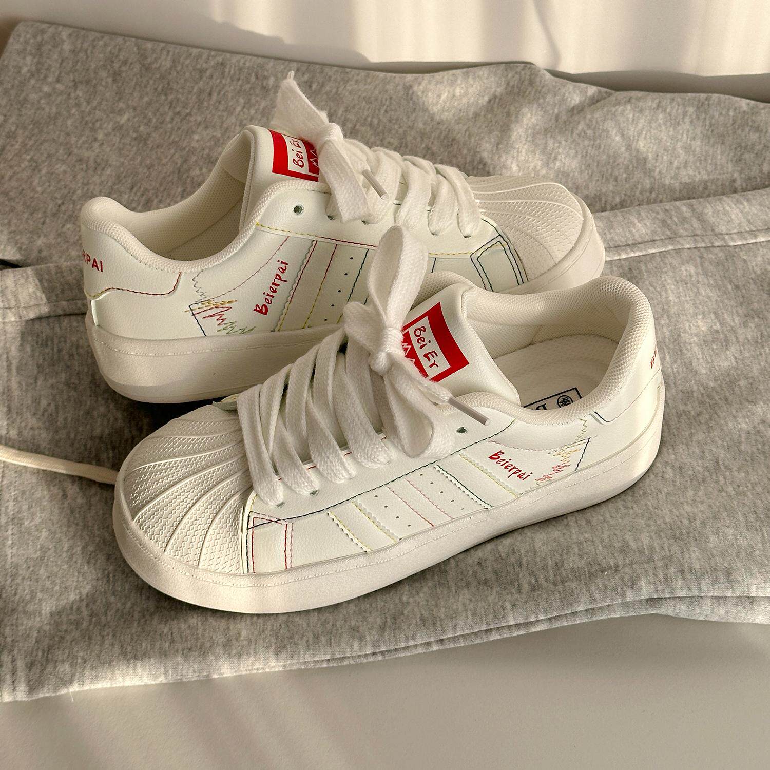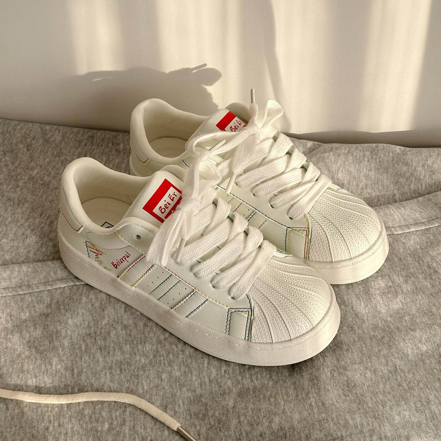 荔枝公园 厚底贝壳鞋女2025春季新款百搭休闲透气运动板鞋小白鞋