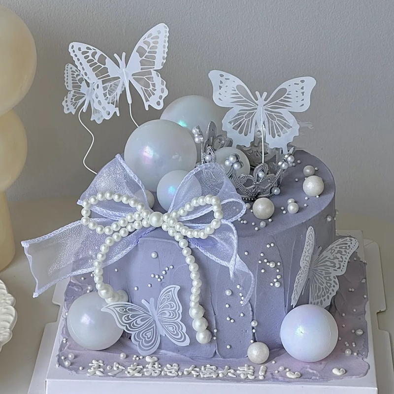 网红仙气飘飘香芋紫蝴蝶结丝带珍珠串透明皇冠摆件适合送女生装扮