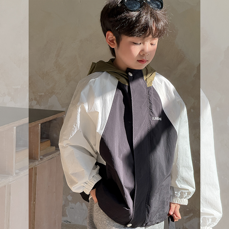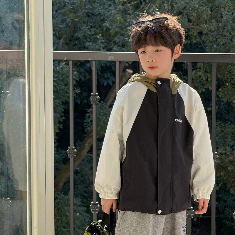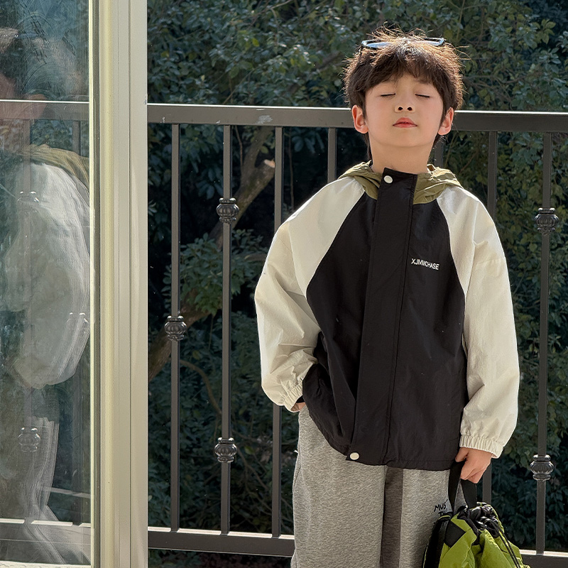 虾酱麻麻男童防水外套春秋款2025新款男孩上衣防风连帽儿童冲锋衣
