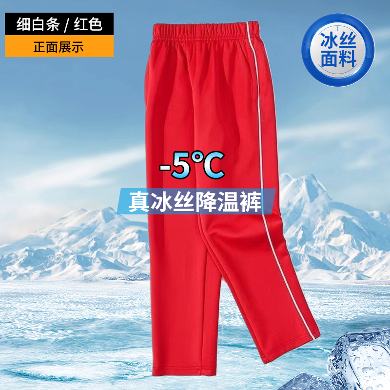 校服裤子红色学生二条杠小学生初中初中生校裤一道杠夏季冰丝薄款