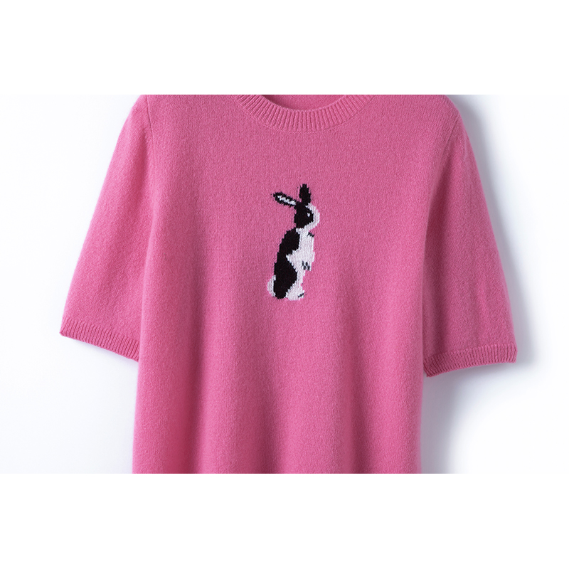 极简与舒适!多色云朵白厂丝羊绒 设计感兔子提花针织衫
