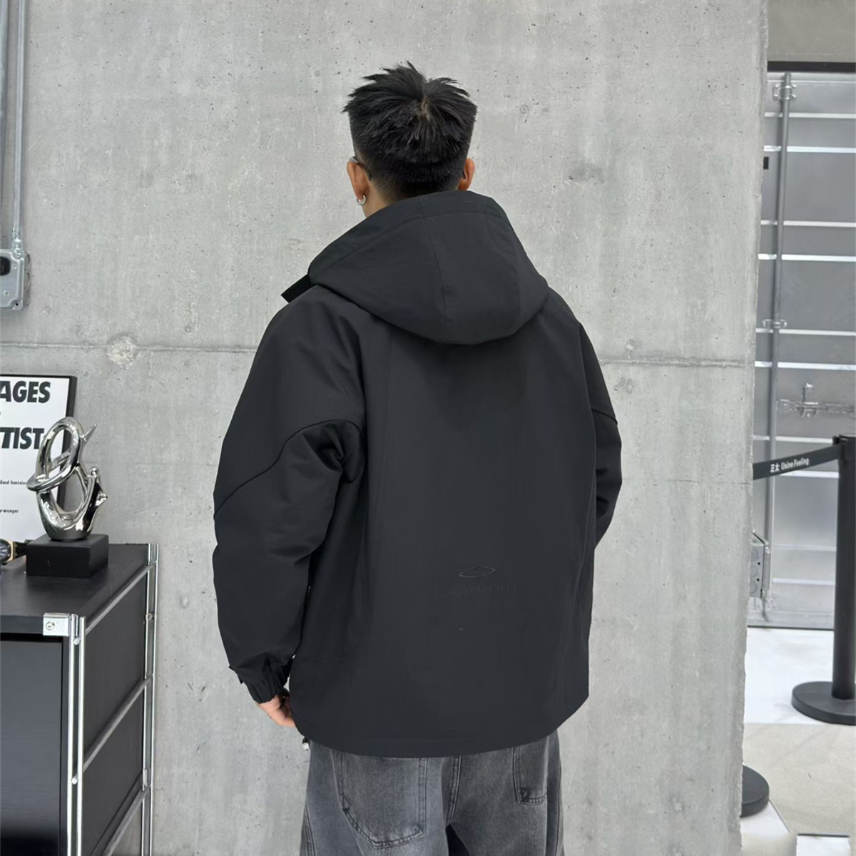 潮老怪字母刺绣连帽工装棉衣外套男秋季宽松休闲青年帅气百搭棉服