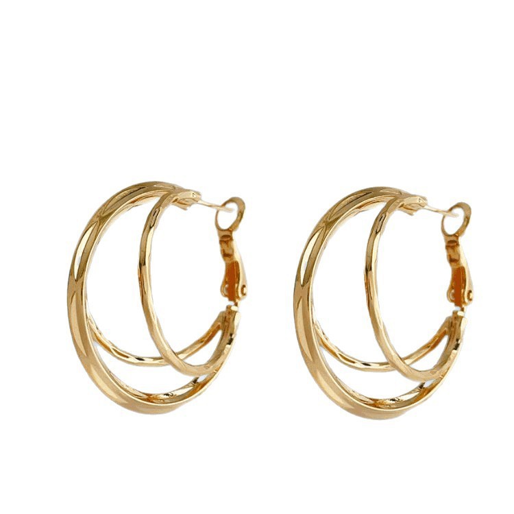 欧美简约日常通勤多层耳圈耳扣925银针金色耳环金属风