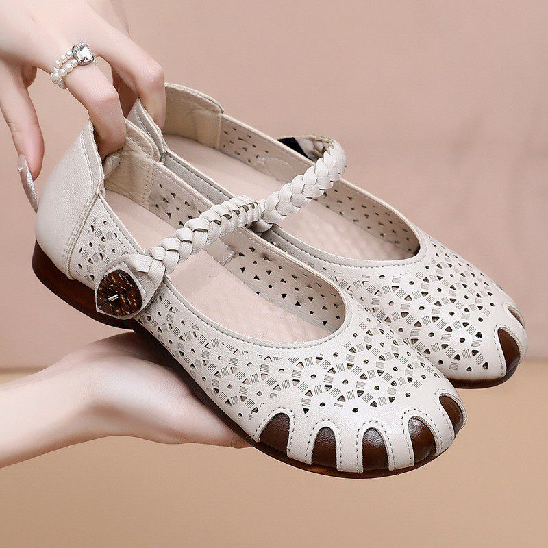 夏季舒适软底软皮妈妈鞋凉鞋洞洞鞋牛筋底中老年女鞋单鞋