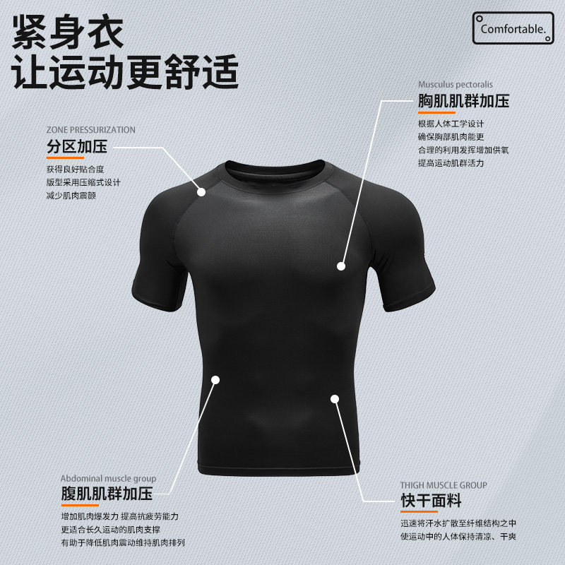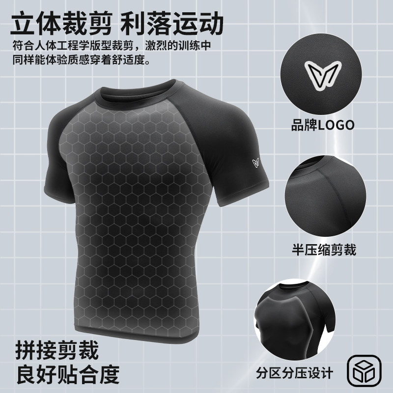 维动短袖上衣运动套装男健身衣跑步透气压缩篮球高弹训练紧身T恤v