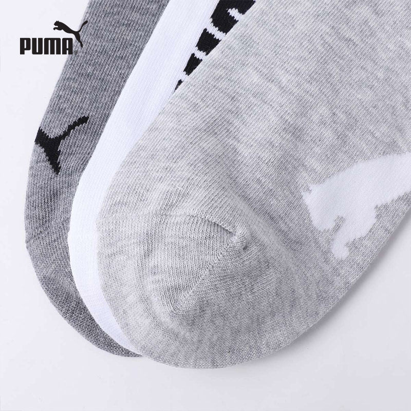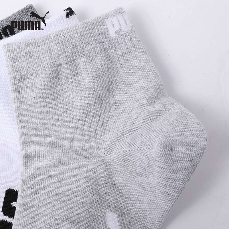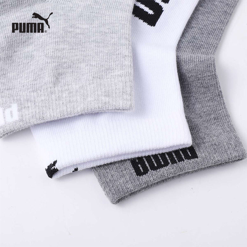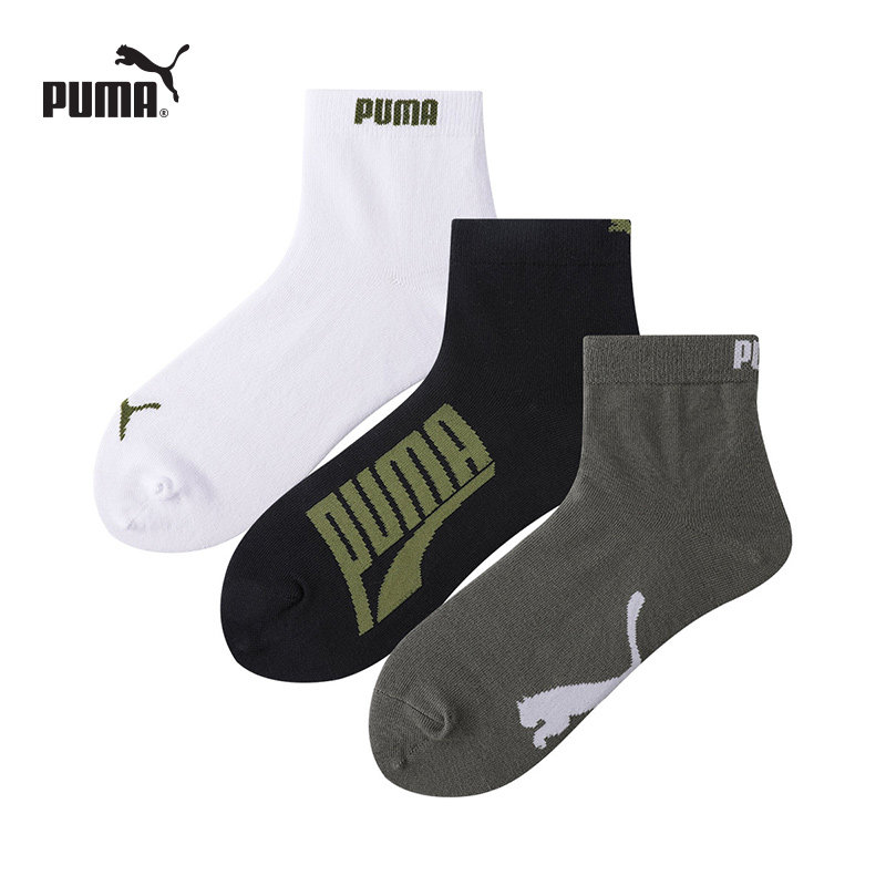 PUMA彪马新品袜子男士纯色简约经典印花吸汗透气休闲中筒袜3双装