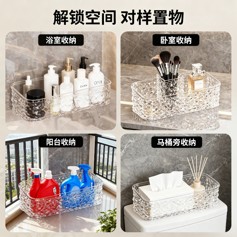 亚克力浴室置物架家用卫生间免打孔壁挂收纳盒洗漱台化妆品收纳架