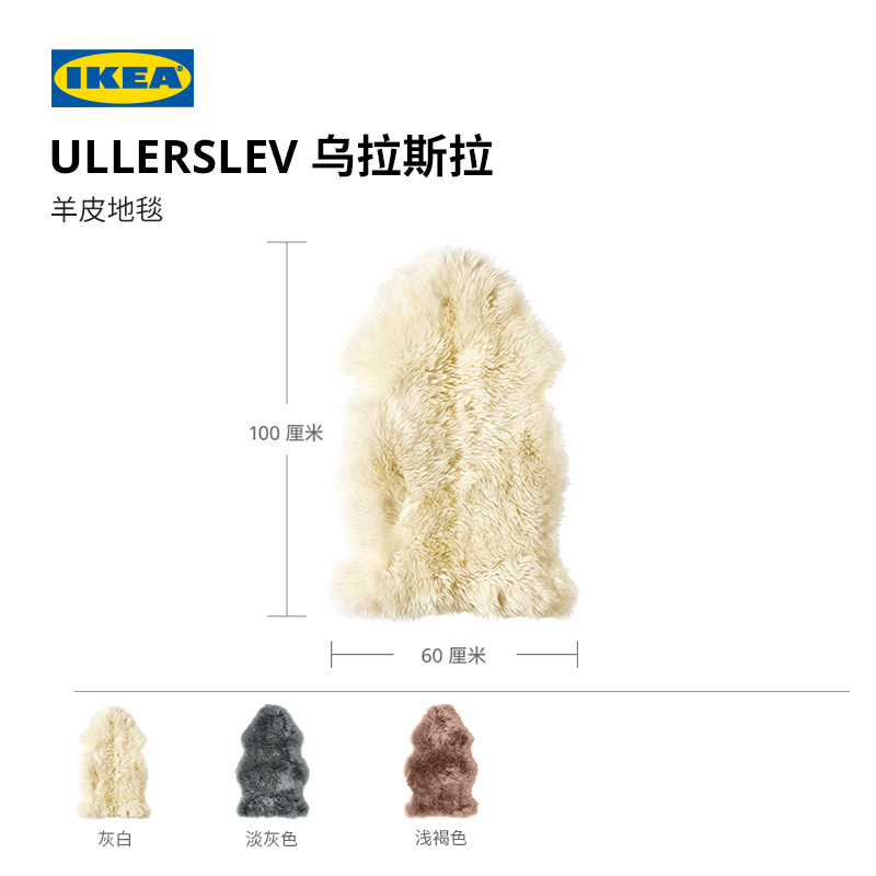 IKEA宜家ULLERSLEV乌拉斯拉羊皮地毯脚垫毛毯柔软坐垫飘窗垫高级