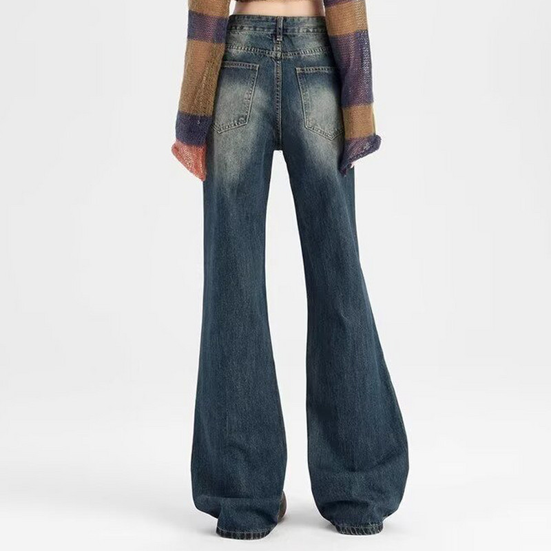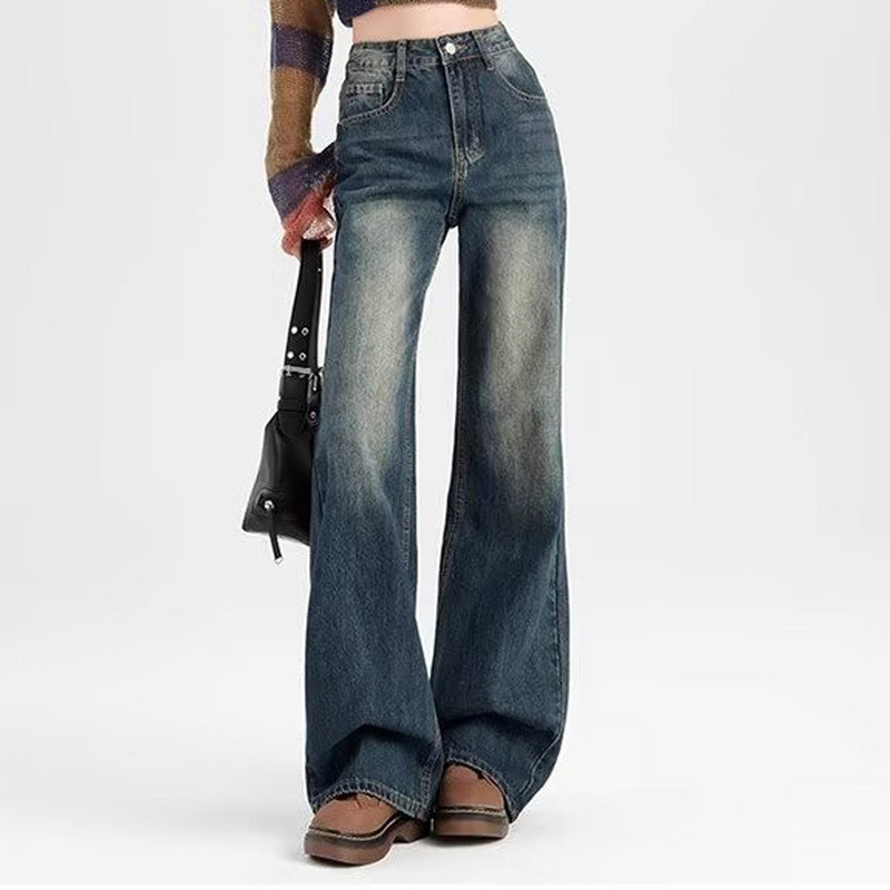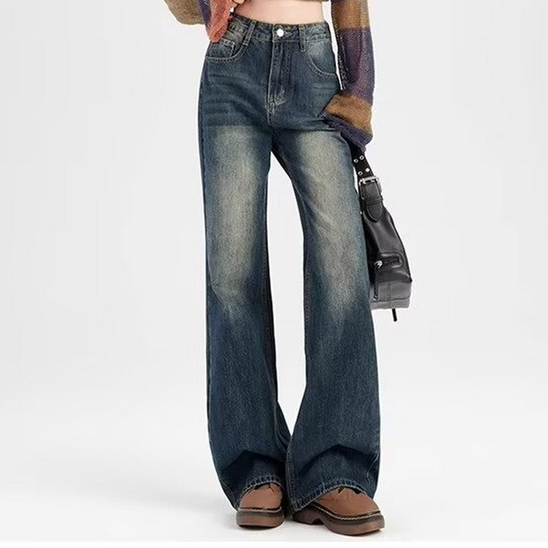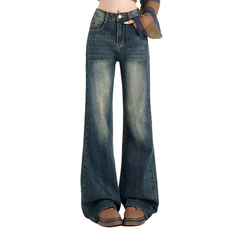 KF真维斯女装2025春节新款 复古休闲百搭女款宽松阔腿牛仔长裤