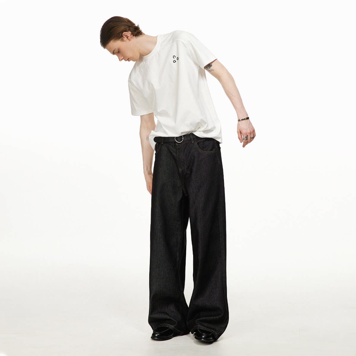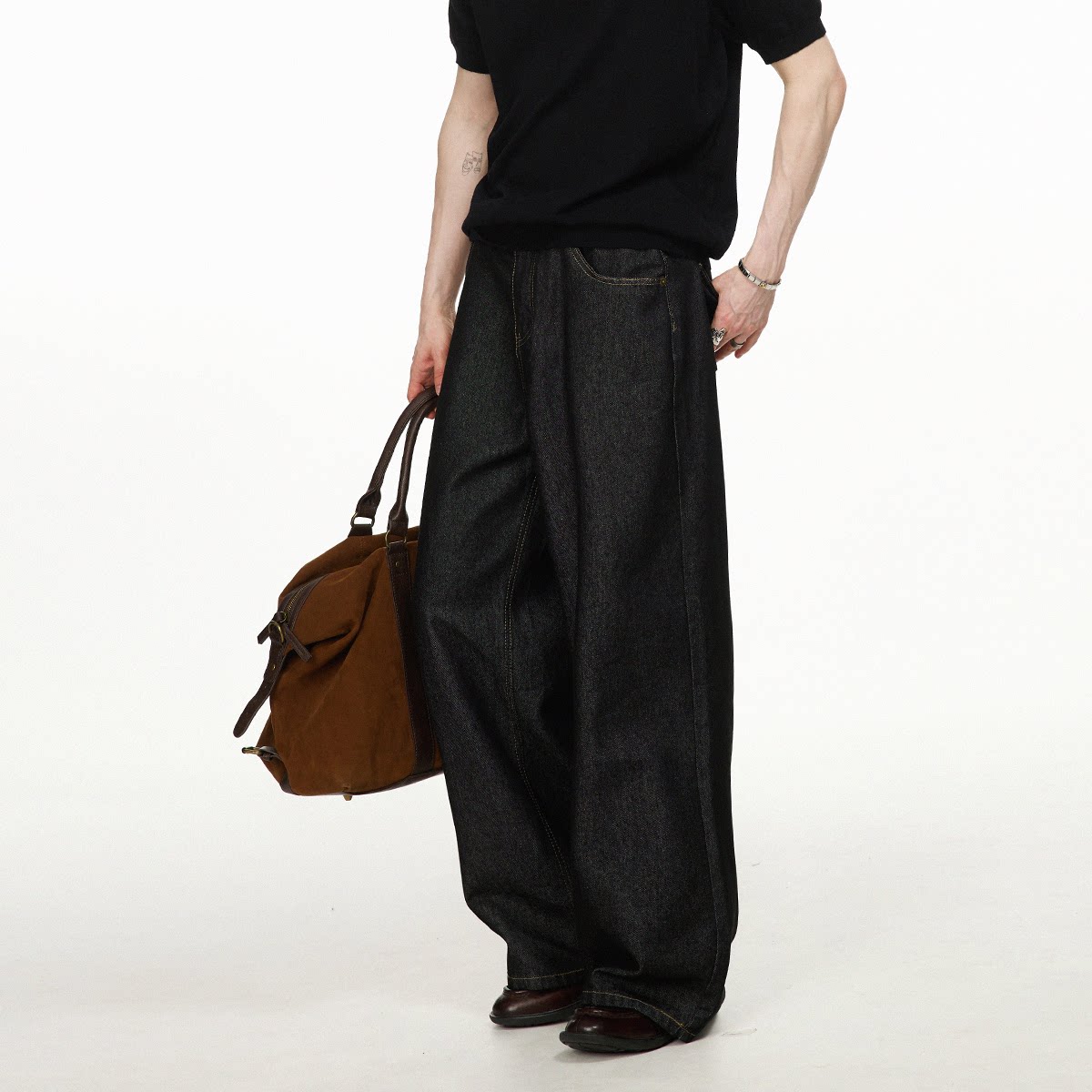 男道纯色水洗阔腿牛仔裤男女2026新款百搭显瘦垂感拖地长裤