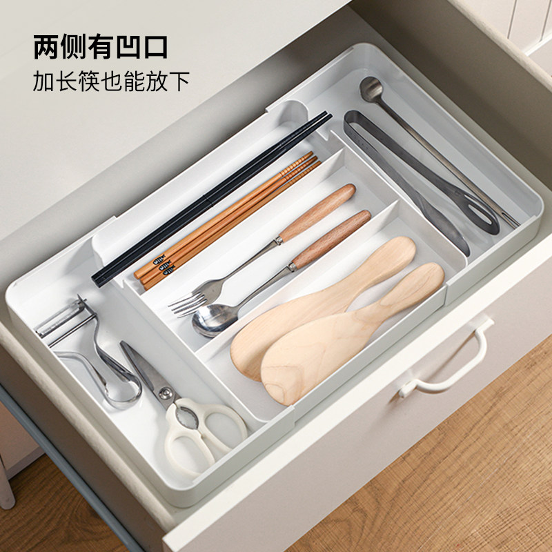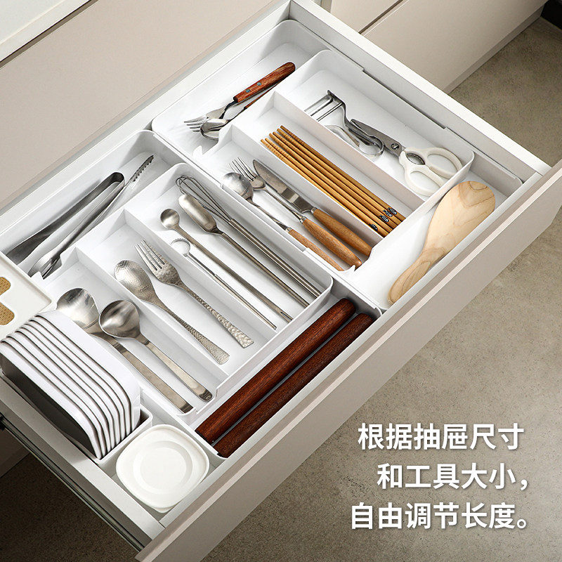 日本霜山抽屉收纳盒厨房可伸缩分隔餐具盒家用文具化妆品整理盒
