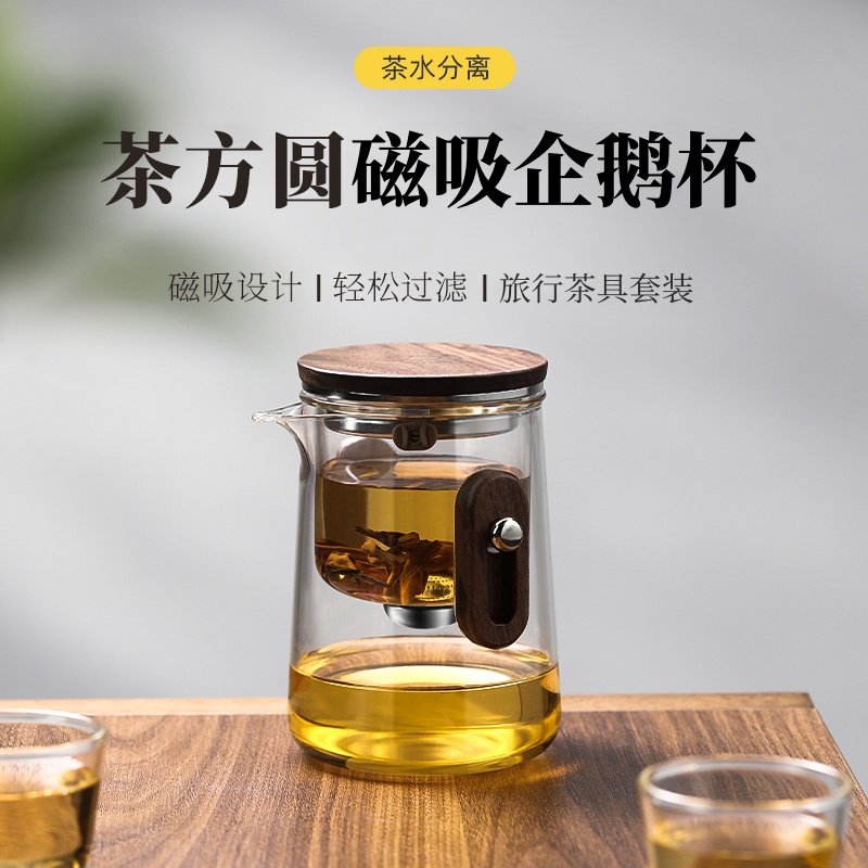 升级版茶方圆零杆泡茶壶飘逸杯耐热玻璃内胆磁吸茶水分离茶仓茶漏
