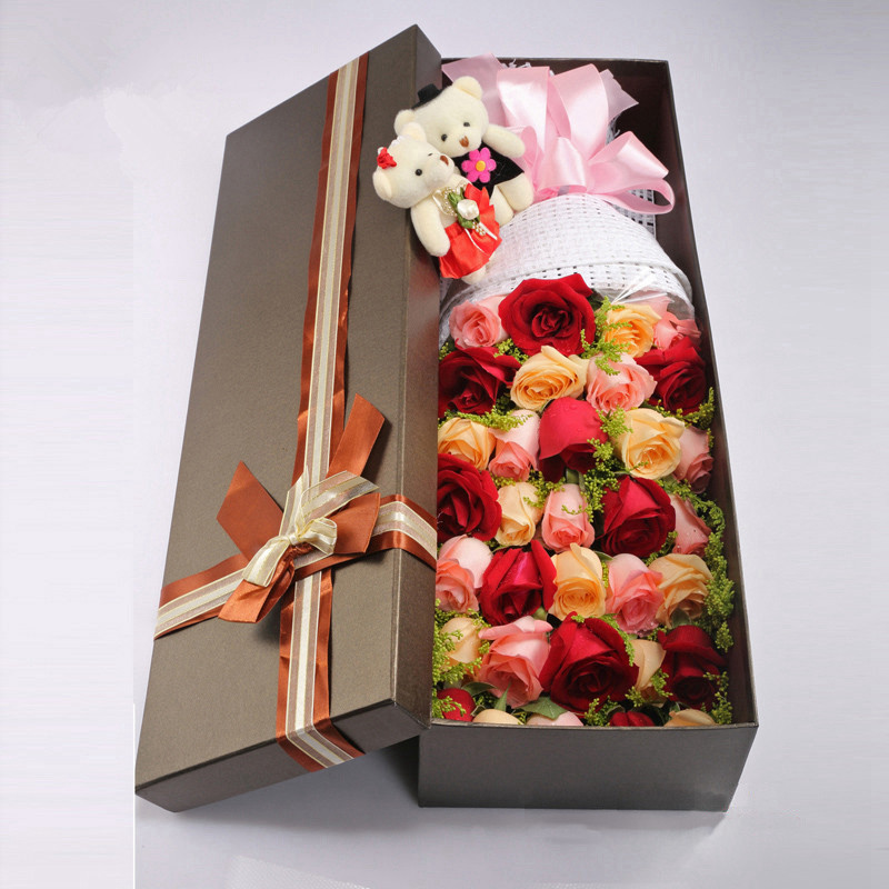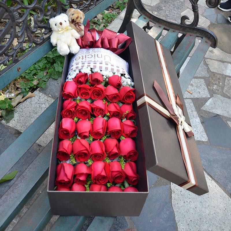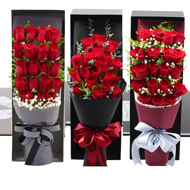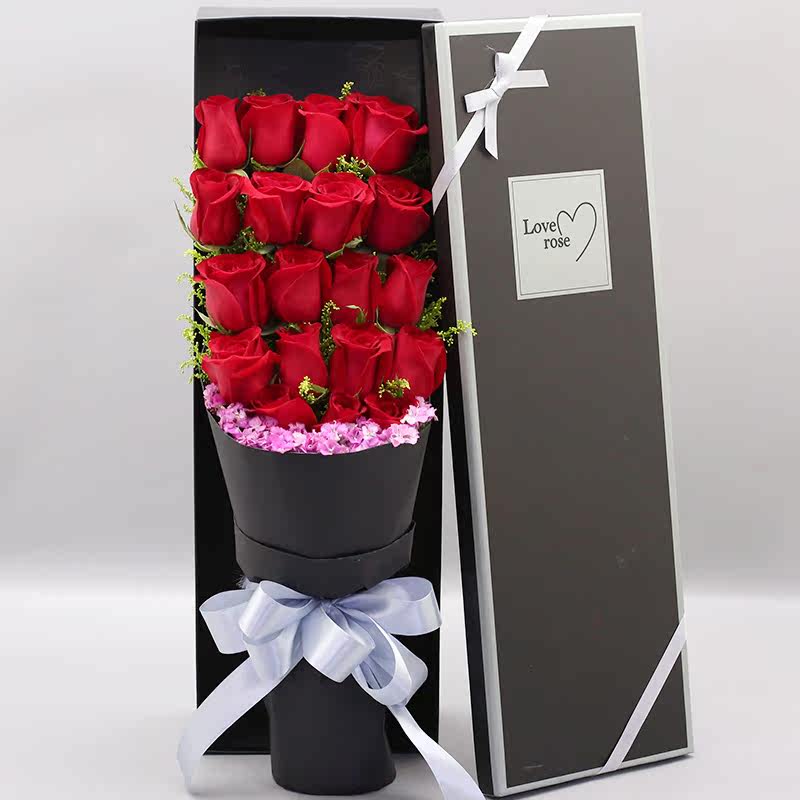 鲜花礼盒红粉白香槟玫瑰花束生日礼品情人节上海花店同城鲜花速递