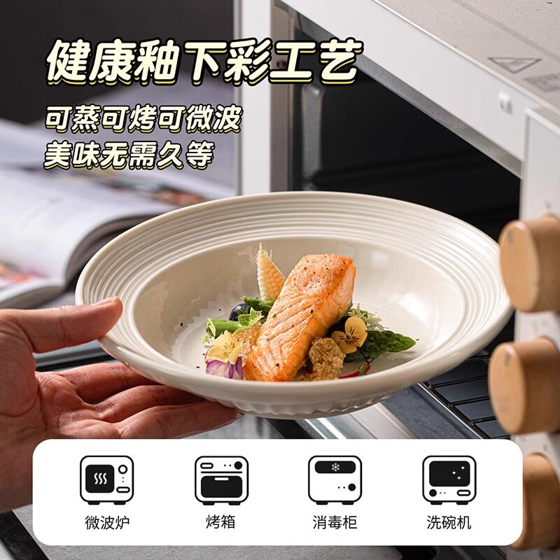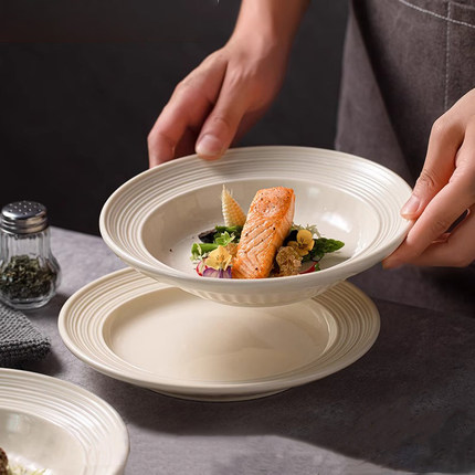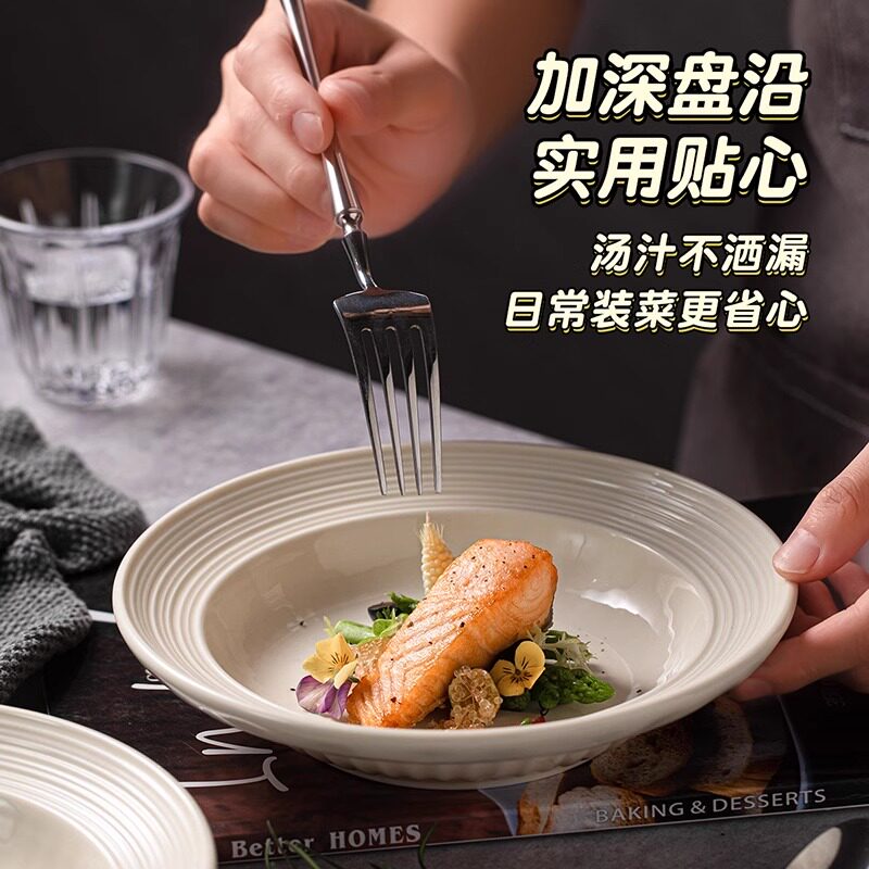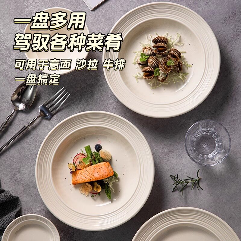 盘子家用菜盘高级感餐具碗盘牛排西餐餐盘草帽盘意面深盘陶瓷盘子